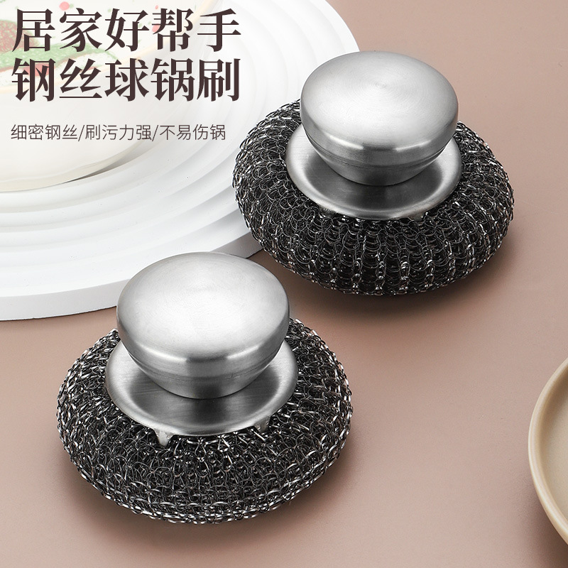 現物ステンレス鋼線ブラシ柄付き皿洗い鍋神器家庭用台所は糸を落とさずに手を傷つけない清潔なボール