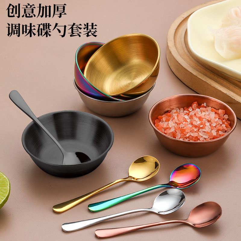 201 ステンレス鋼ラウンドディップソーサーデザートスプーンセット家庭用増粘スナックトマトソースソーサーソースソーサー