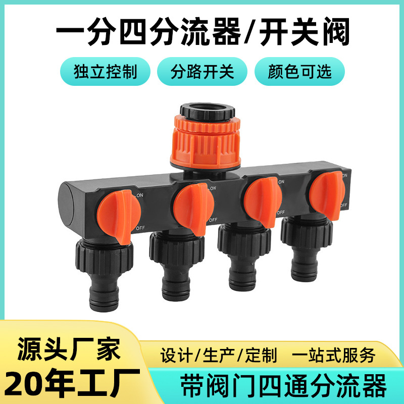 源头一分四出分流器分水阀四通阀门开关水管软管水龙头奶嘴接头