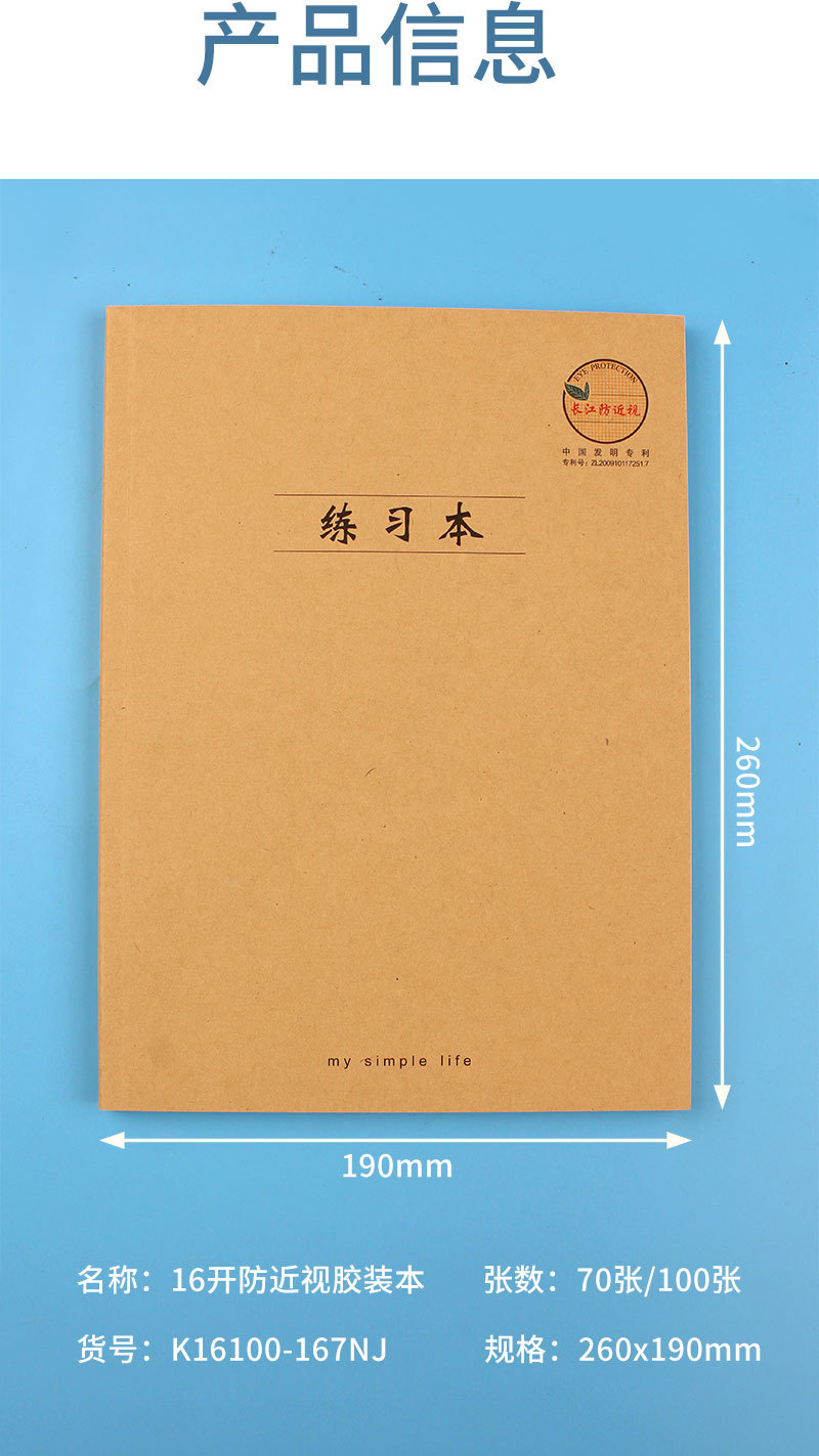 長江の目の黄色の宿題帳の練習帳は16kの学生の教室のノートの練習帳の重点のノートを厚くします。