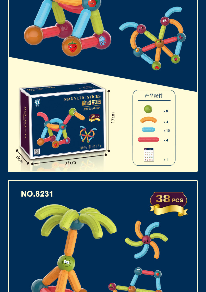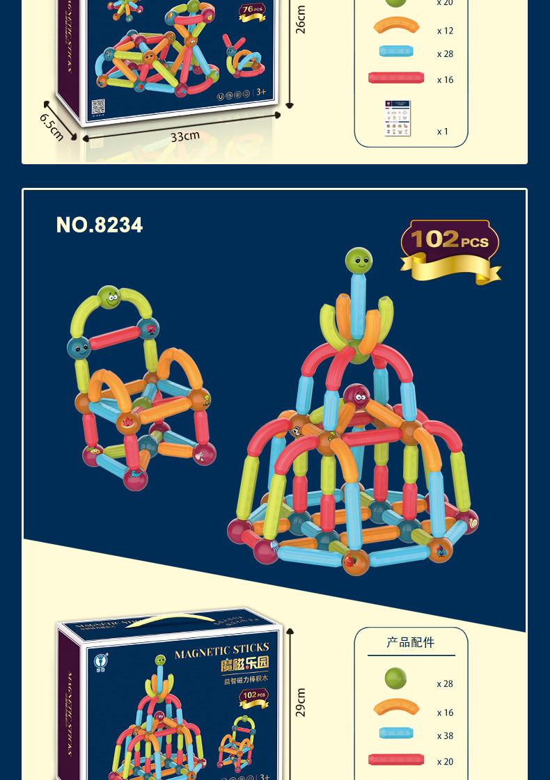 益智磁力棒積み木26pcs,益智磁力棒積み木38pcs,益智磁力棒積み木52pcs,益智磁力棒積み木76pcs,益智磁力棒積み木102pcs,益智磁力棒積み木128pcs