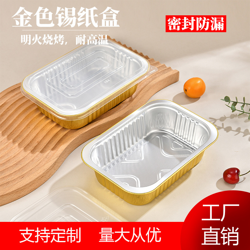 出前ランチボックス金色錫紙箱はロブスターの酸っぱい魚鉢を厚くして、一度に長方形の梱包箱を密封することができる