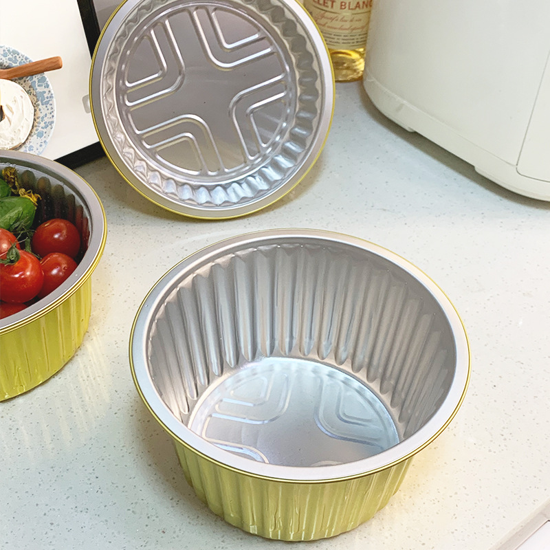 使い捨てのテイクアウト梱包箱アルミ箔錫紙箱鍋プレハブ料理空気フライヤーオーブン用ボウル金色円形