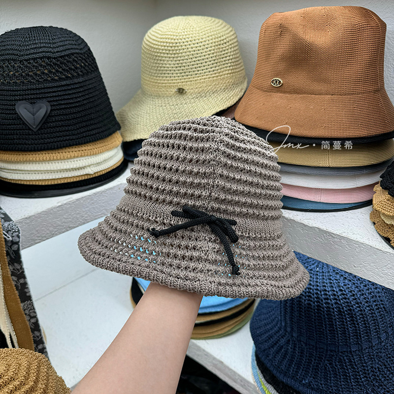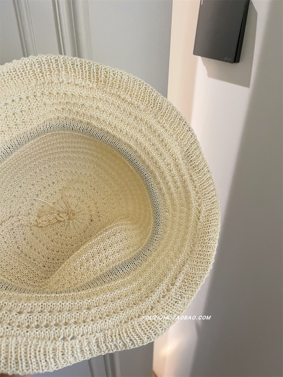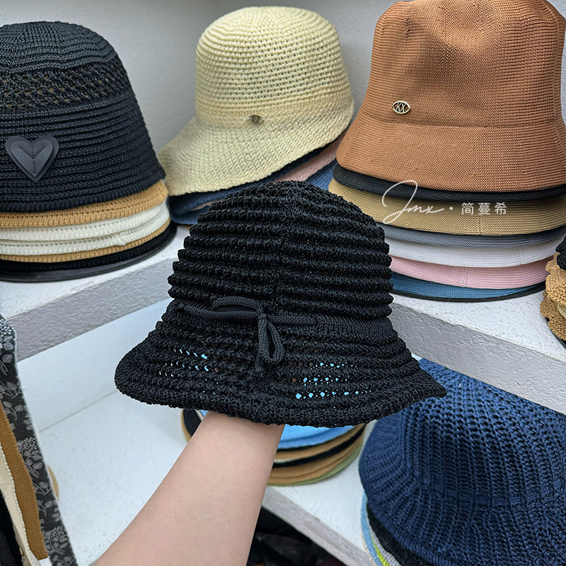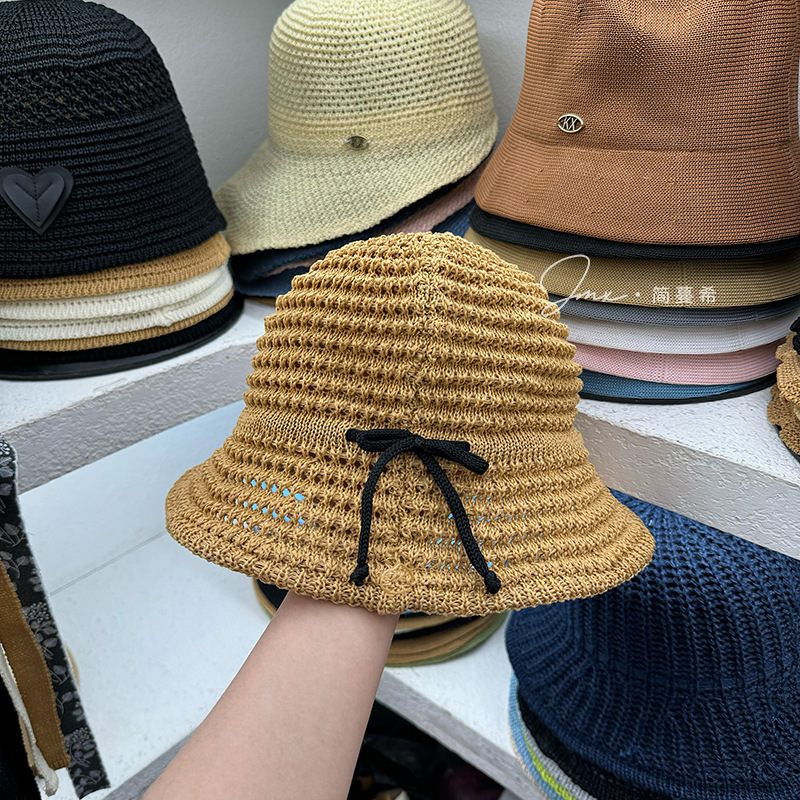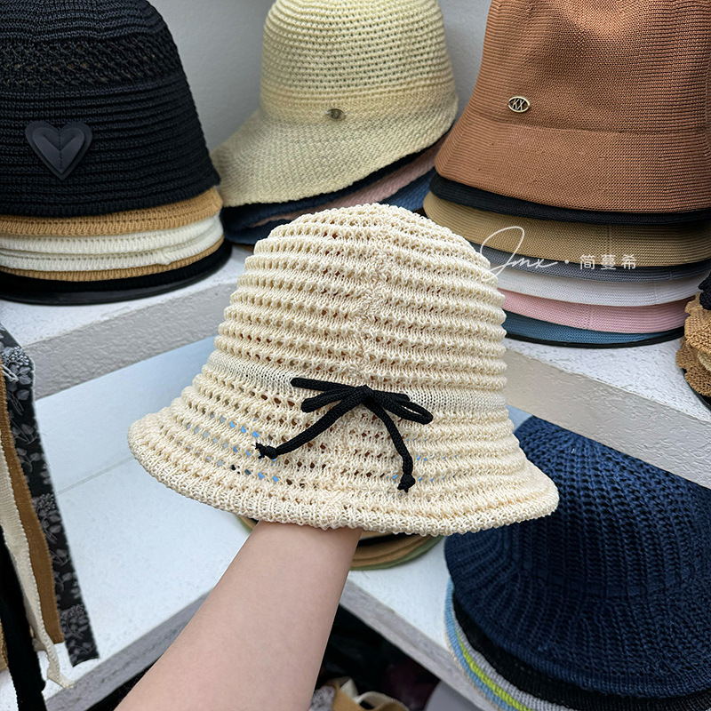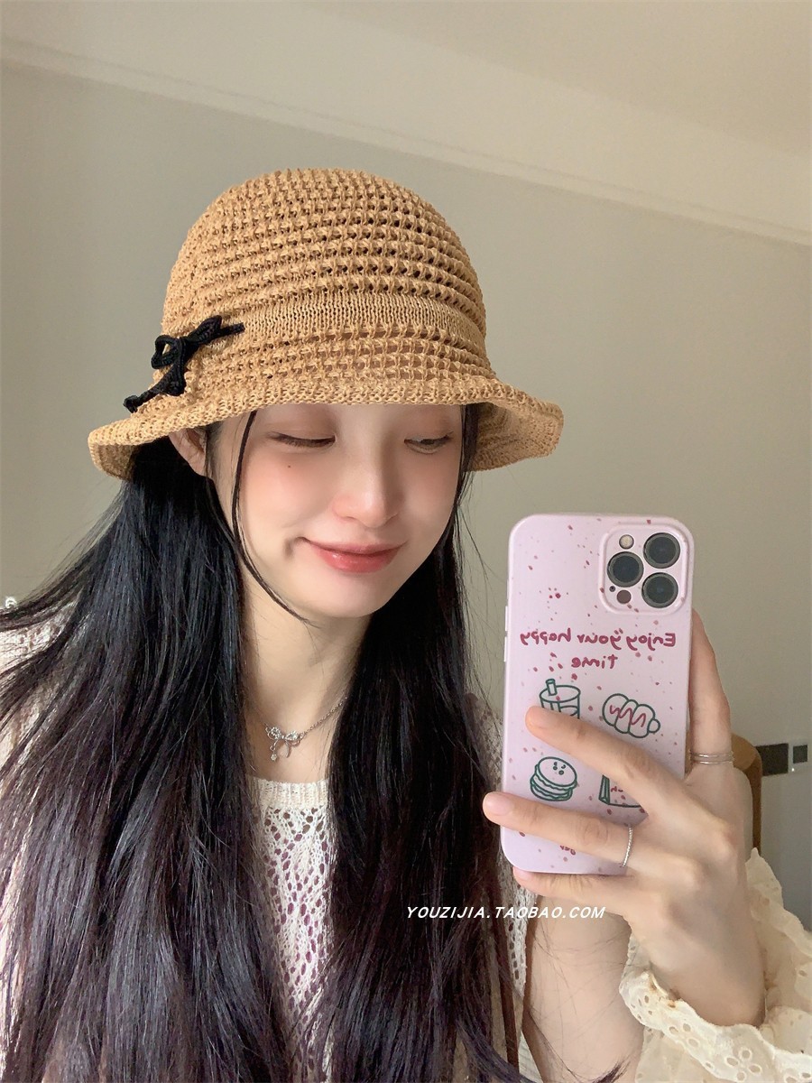 韓国版ins甘い蝶結びの透かし彫りの丸みを帯びた麦わら帽子