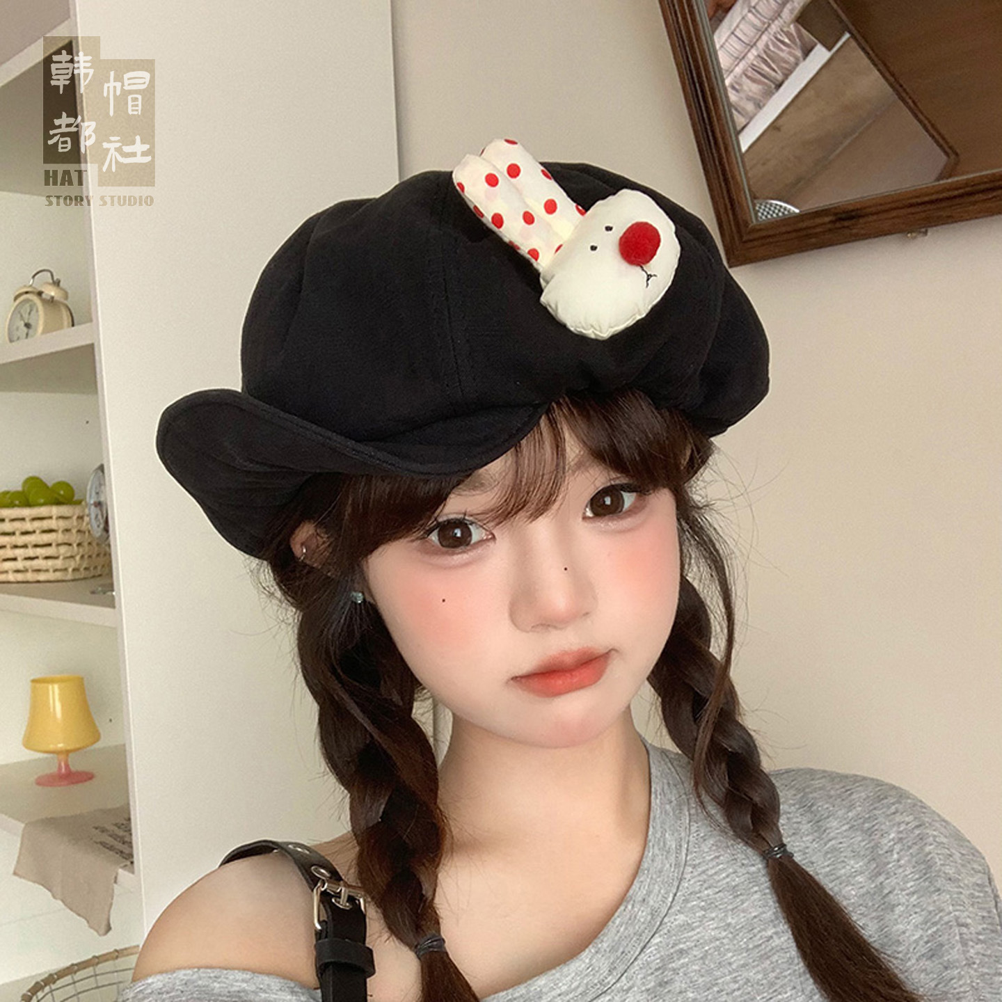 红鼻兔云朵贝雷帽女款2025新款夏季薄款韩版显脸小八角帽画家帽子