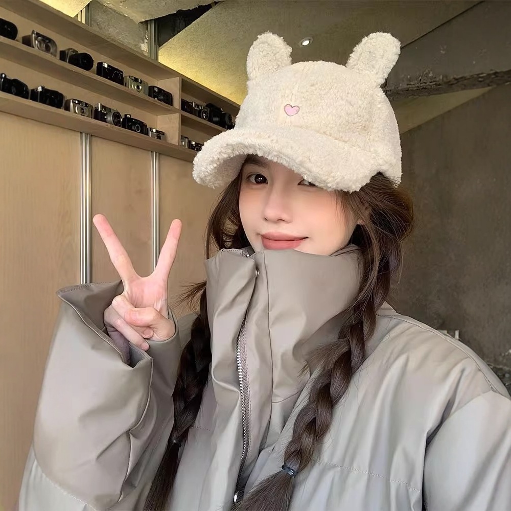 甜美可爱兔耳朵棒球帽子女秋冬羊羔毛绒加厚保暖百搭显脸小鸭舌帽