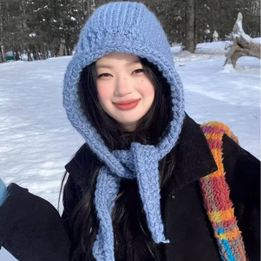 韩版粗针织帽女秋冬季时尚保暖雷锋帽护耳巴拉克拉法帽护耳毛线帽