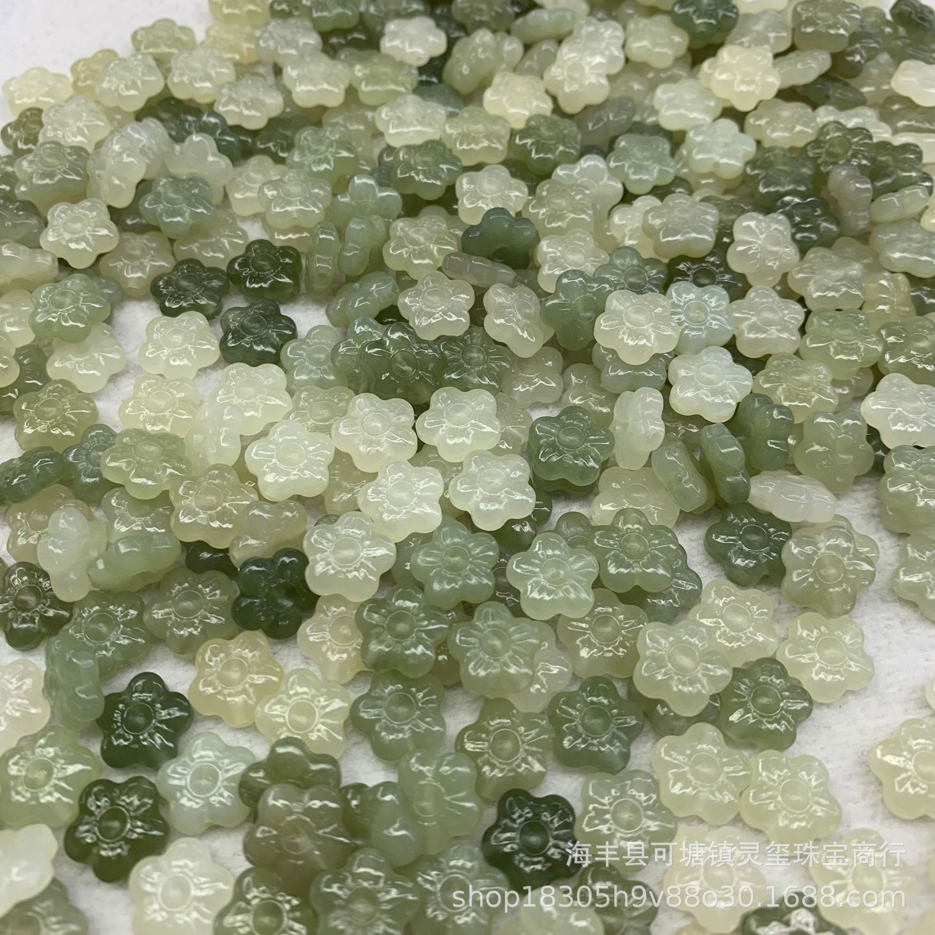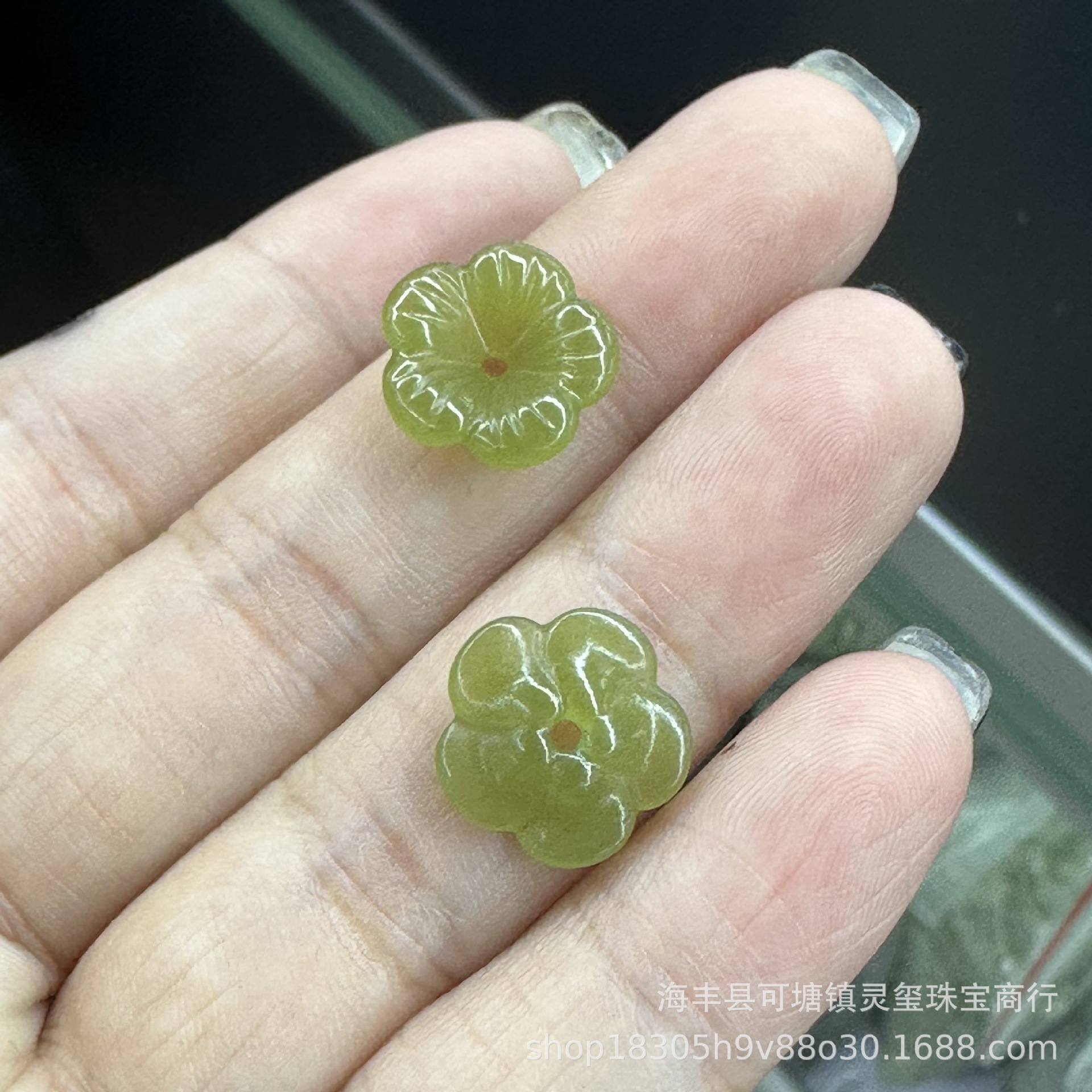 和田玉青海材料両面花上下穴手作りDIY部品小提溜ストラップ玉アクセサリー卸売り工場