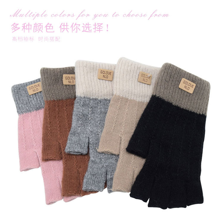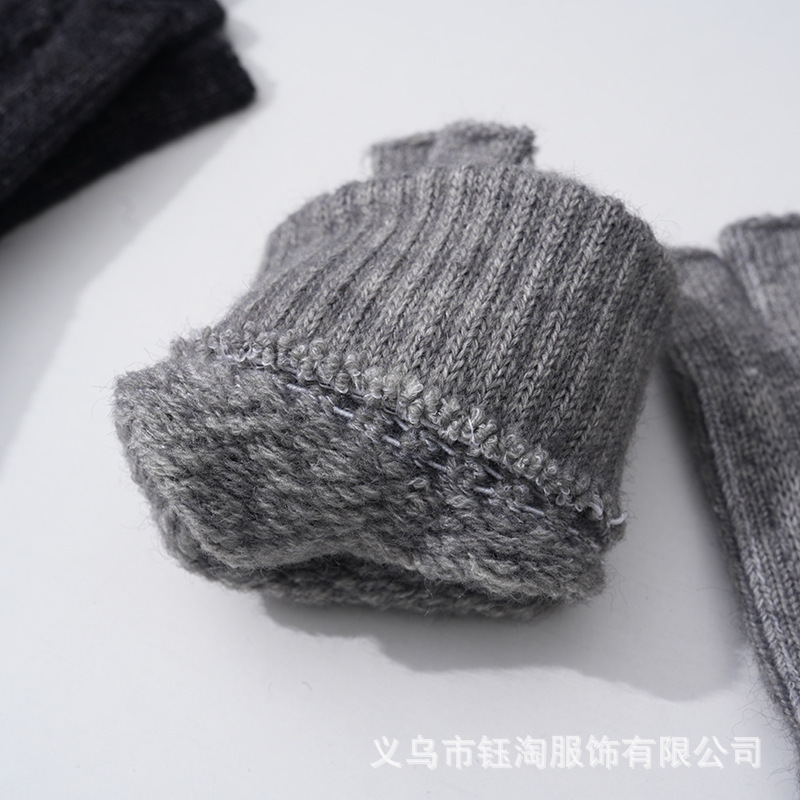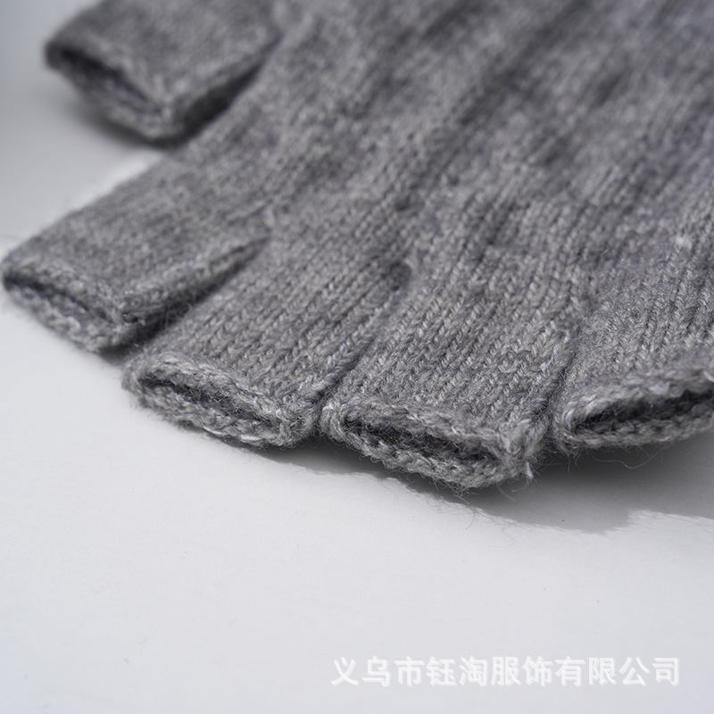 メーカー直販半指羊キャメルケース保温ニット手袋厚手男女通用秋冬露指防寒現物
