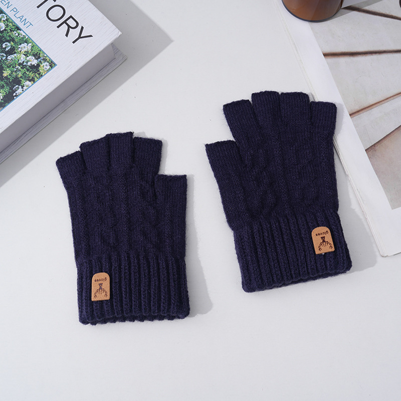 男性の半分の指が厚い保温手袋のメリヤスは、オフィスの学生のベルベットを真似て、純色の手袋を指している