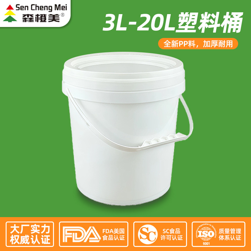 批发3L-20L加厚白色塑料桶油漆涂料洗衣粉食品级密封压盖桶圆桶