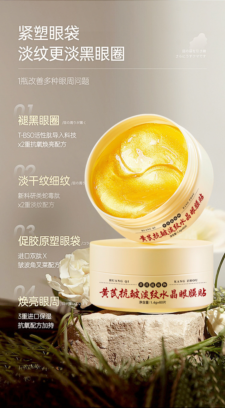 爆品上新黄芪霜眼膜贴抗皱淡纹水晶眼贴紧致提拉眼袋熬夜补水眼贴