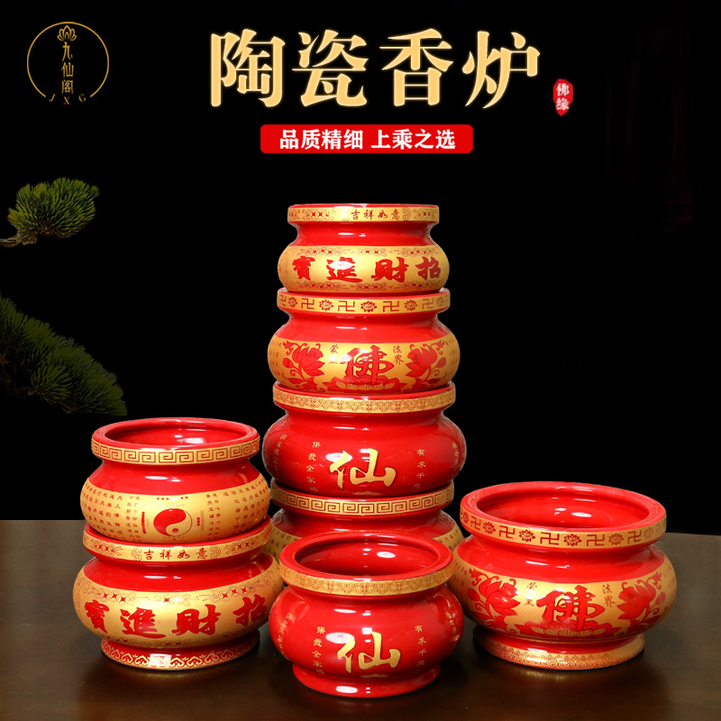 香炉合金メッキ黄陶磁器香炉家庭用上香財神観音供仏香薫炉拝神招財焼