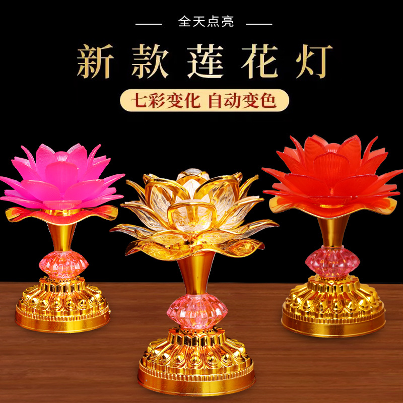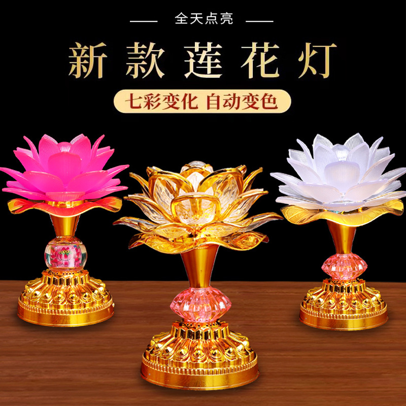 七色蓮花灯led電子仏前供灯長明灯家庭用充電観音菩薩ハス灯供仏灯