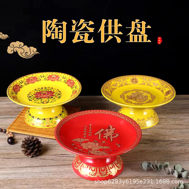 果物の果物を提供する皿の仏堂の前の陶磁器の家庭用の功盤の財神のおじいさんは皿の財神の上で果物の果物の皿を提供します。