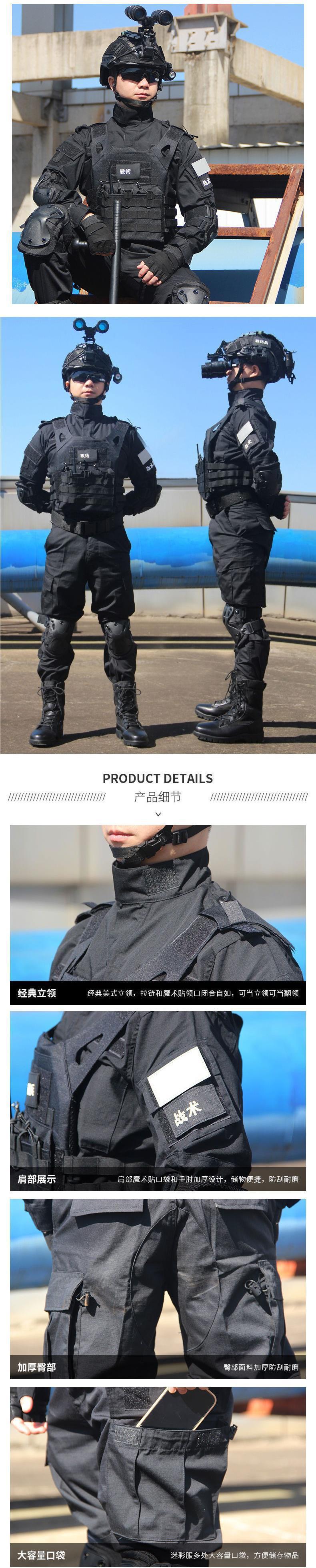 戦術兵黒教官服セット軍事訓練戦術訓練男女拡張耐摩耗性スーツ