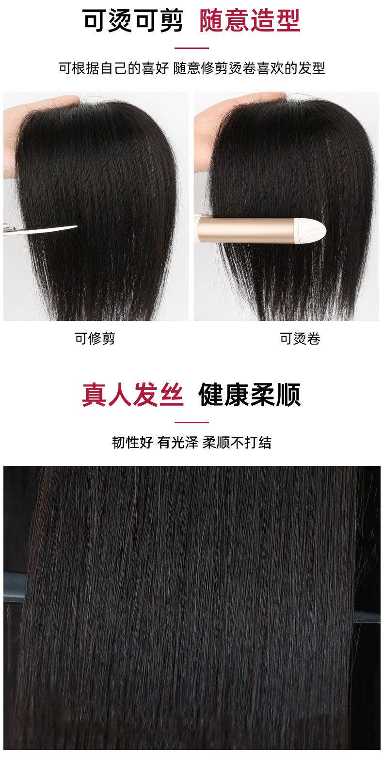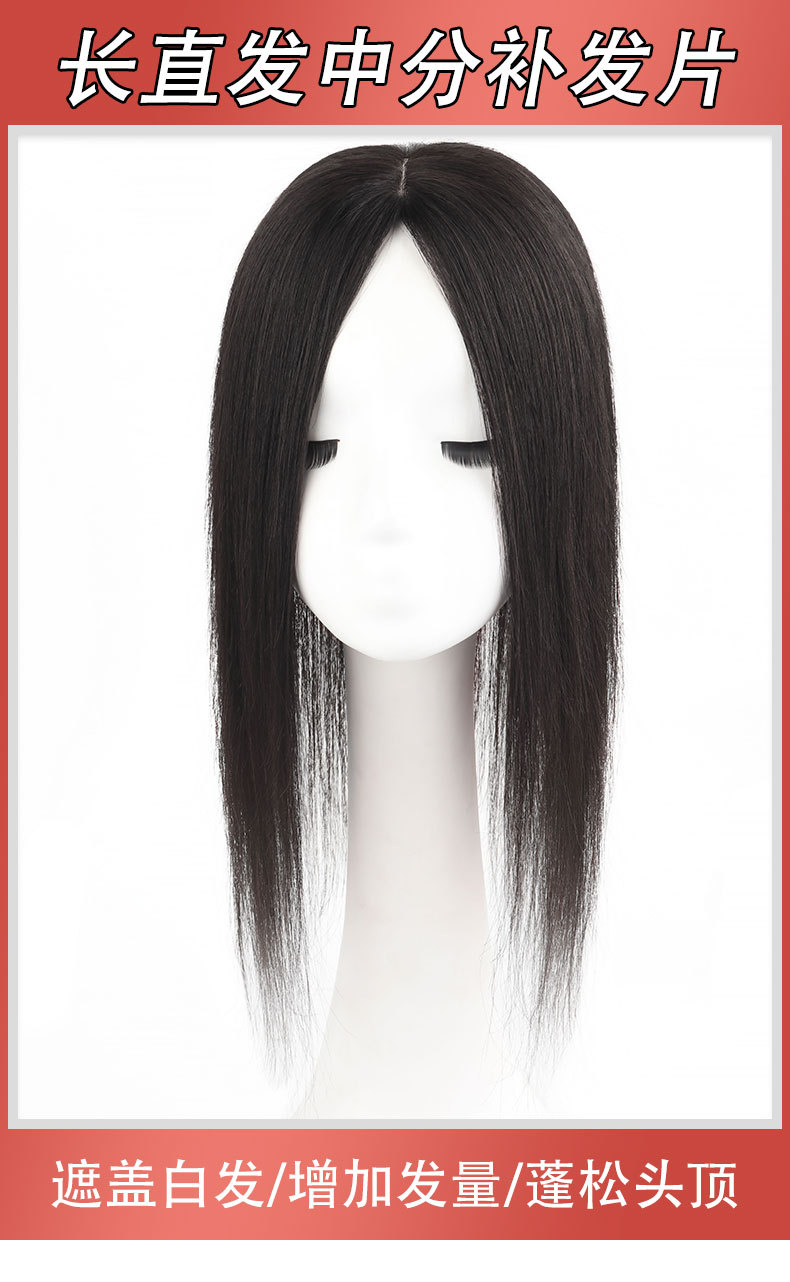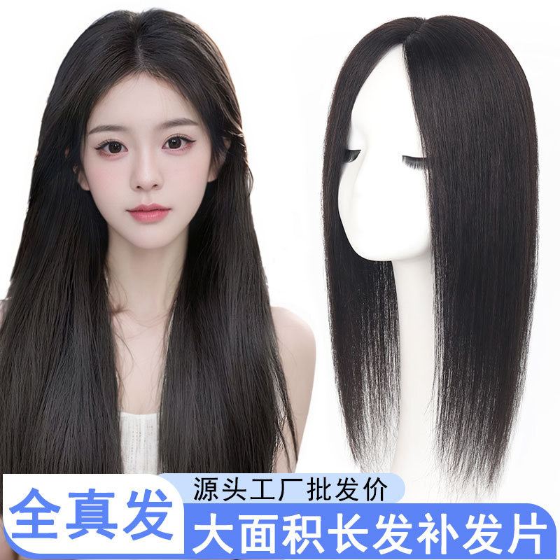かつらヘアピース 頭頂部用 白髪隠し 増毛 人毛ストレートヘア バイカット 前髪付き 女性用 ロングストレートヘア