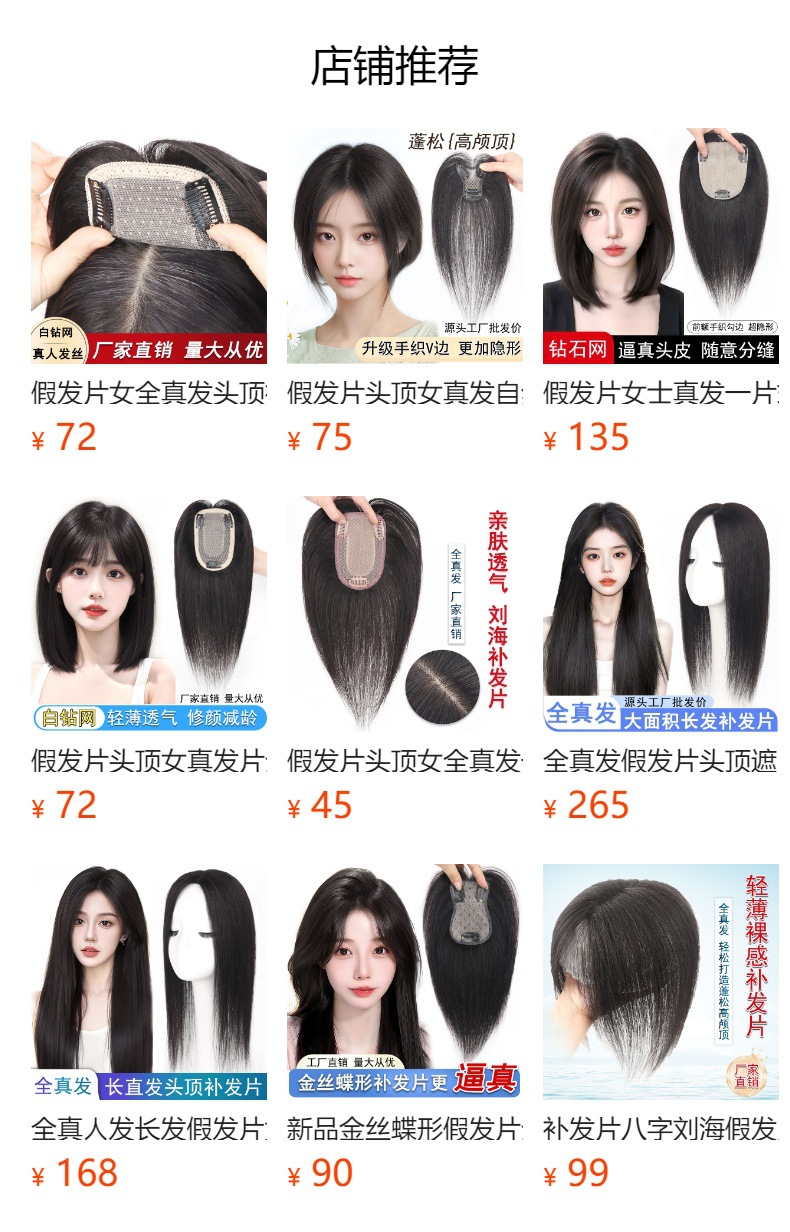 かつらの髪は本当に二重に針を渡して、髪を覆って髪を増やします。