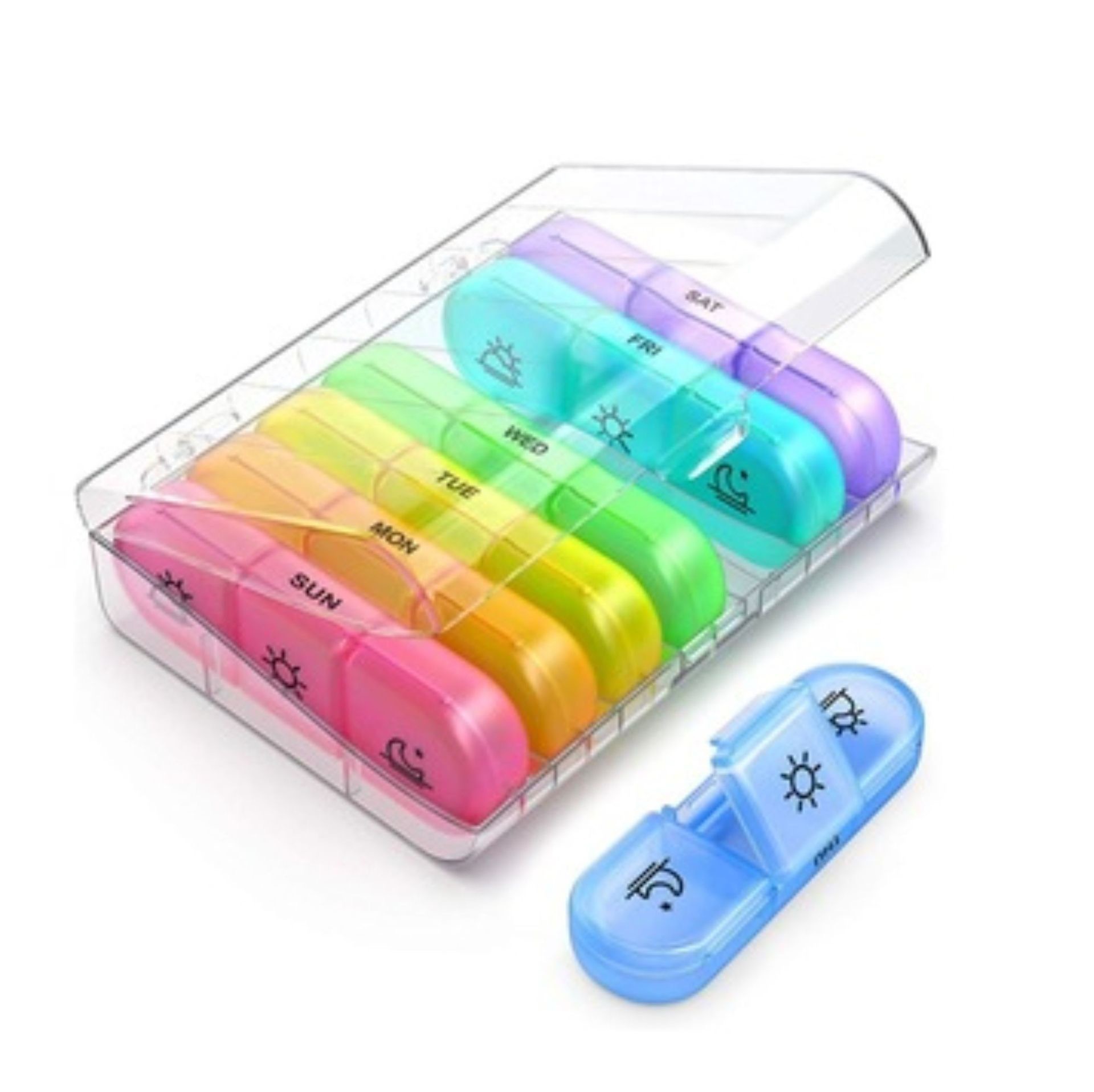 Amazon 1週間14コンパートメントピルボックス食品グレードのピルビタミン収納ボックス7日間の朝と夜の便利な小型ピルボックス
