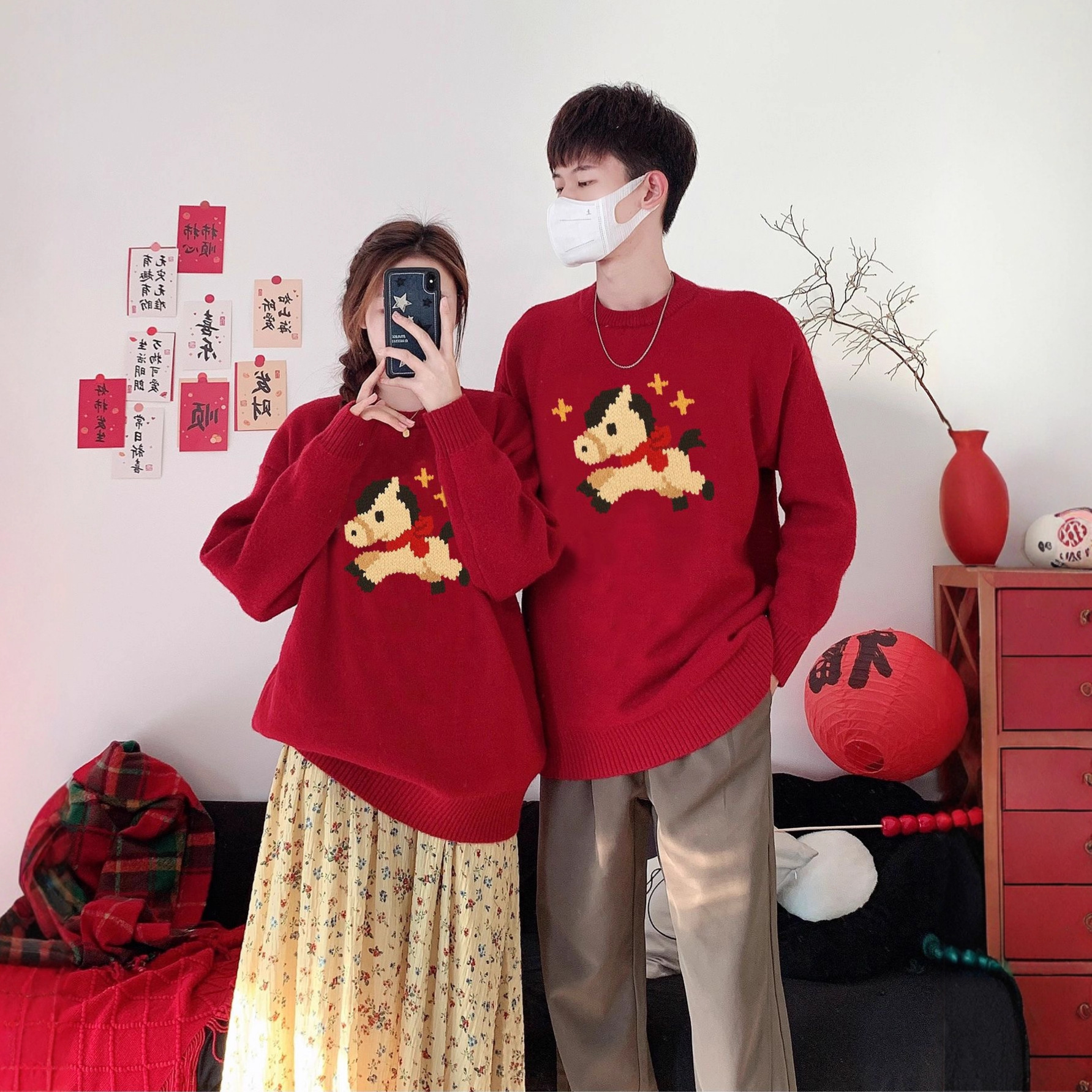 新年红色情侣装针织衫秋冬2026新款圣诞马年本命年女装时尚毛衣女