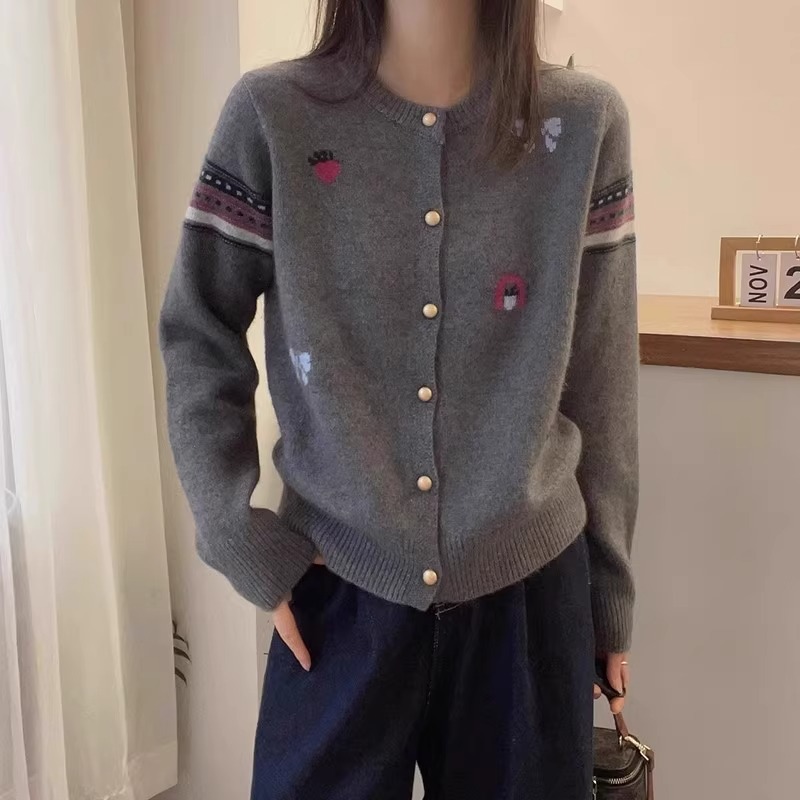 欧洲站秋冬季2025新款欧货洋气减龄刺绣图案单排扣软糯针织开衫女