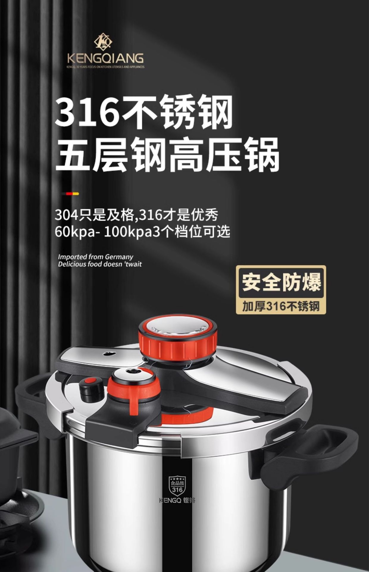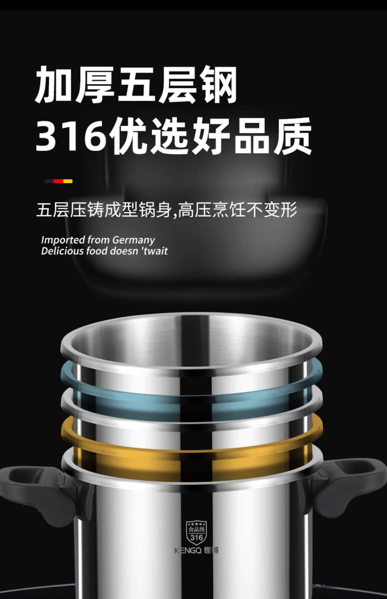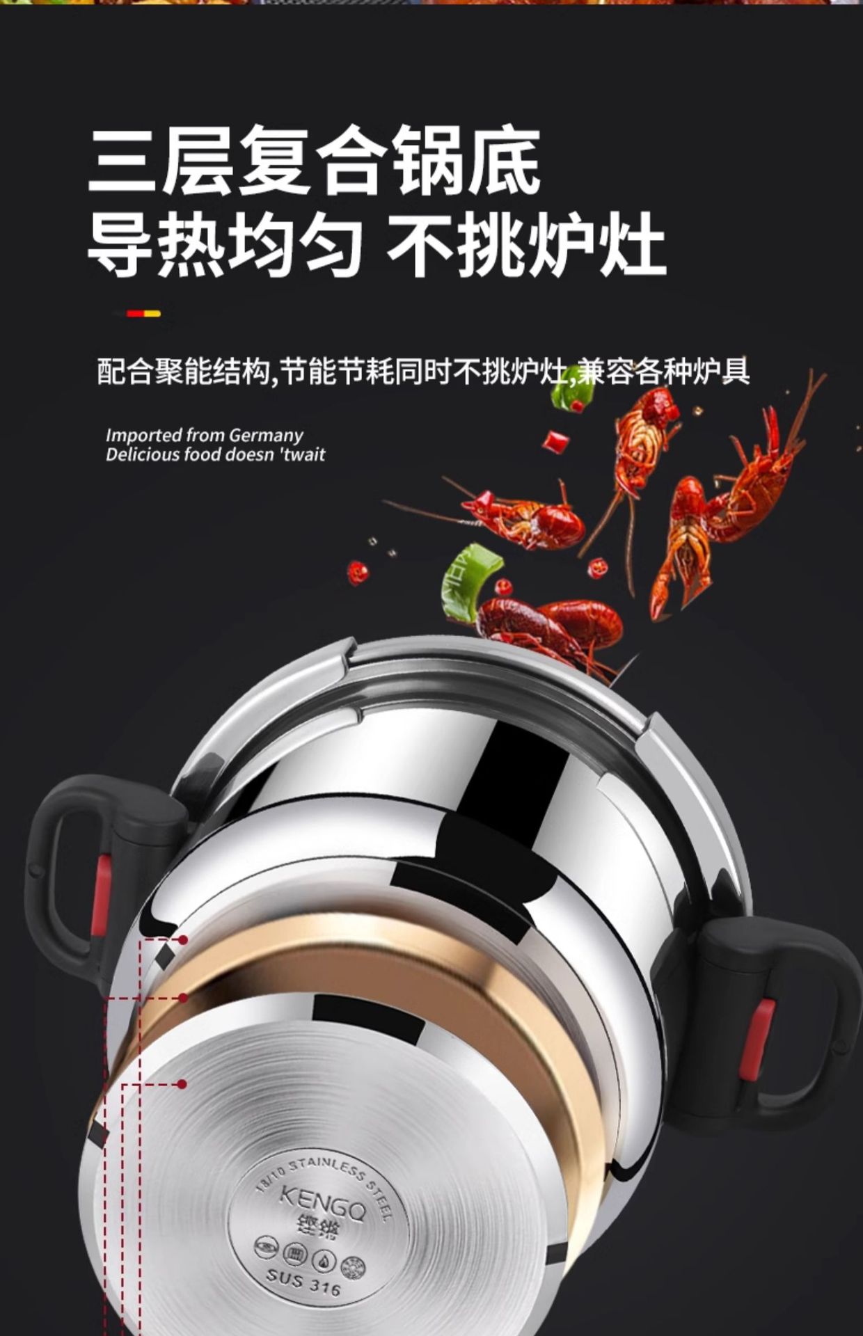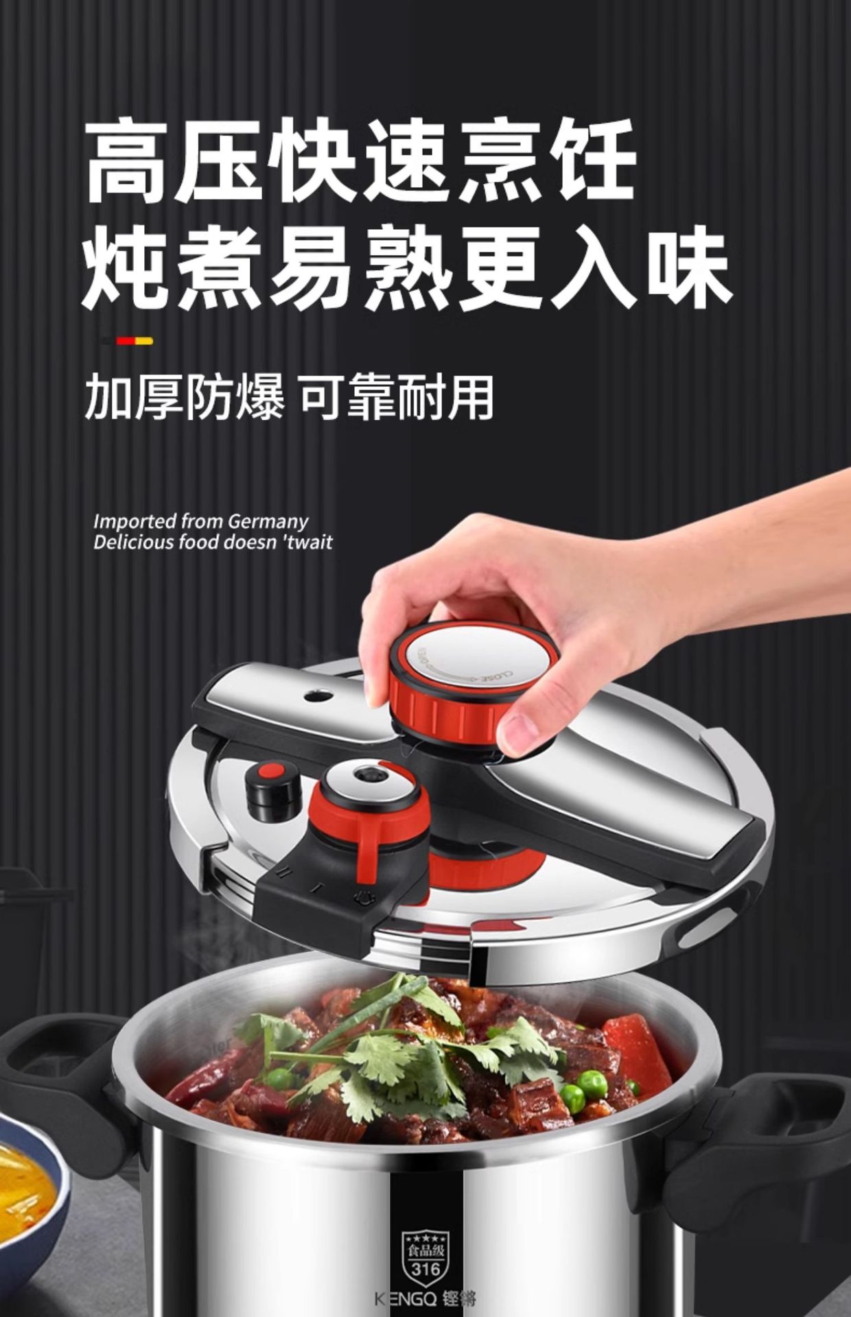 德国316不锈钢高压锅新款家用防爆压力锅多功能电磁炉煤气灶通用