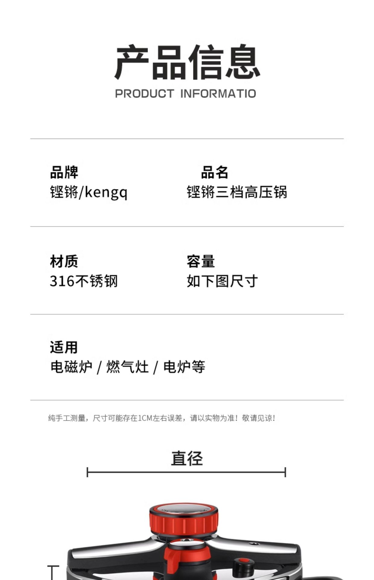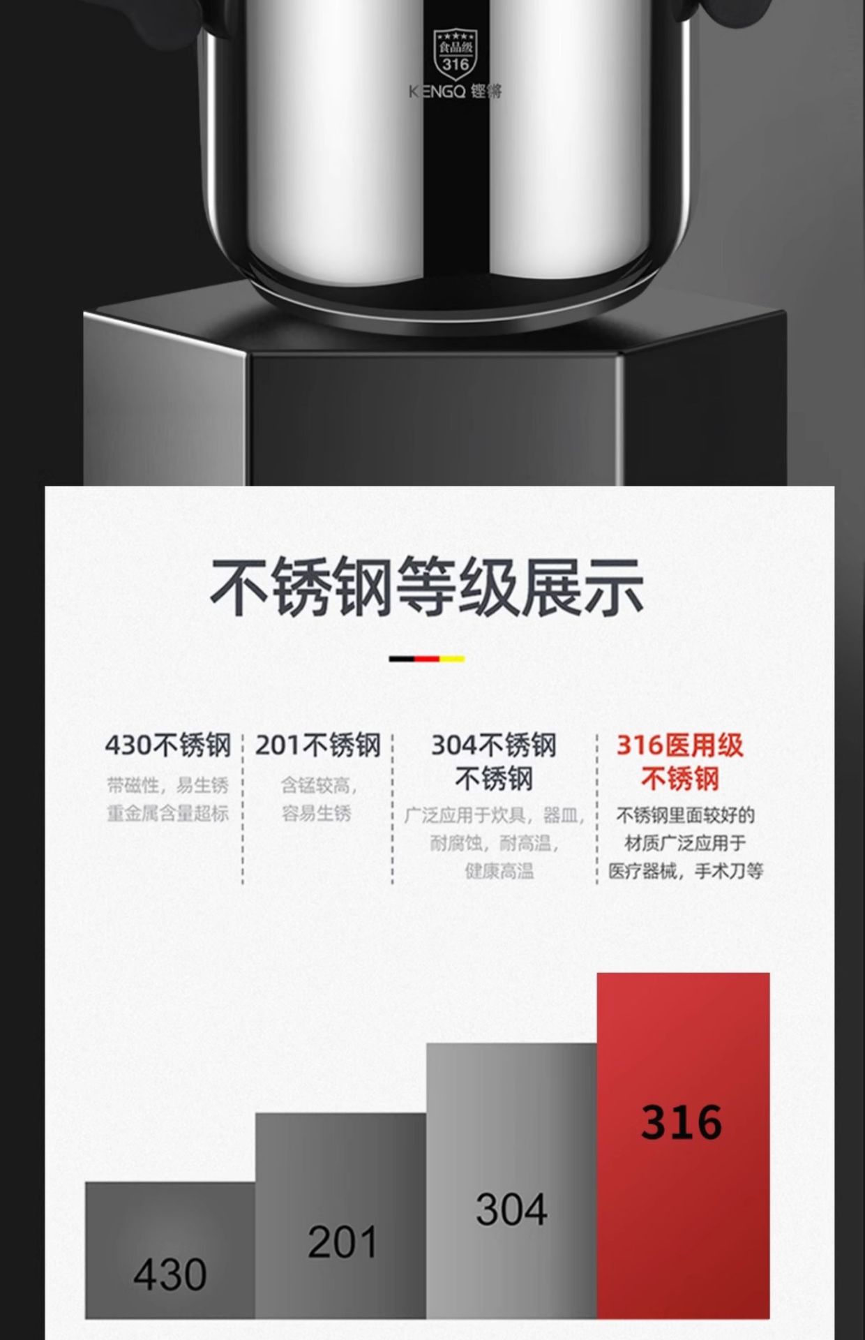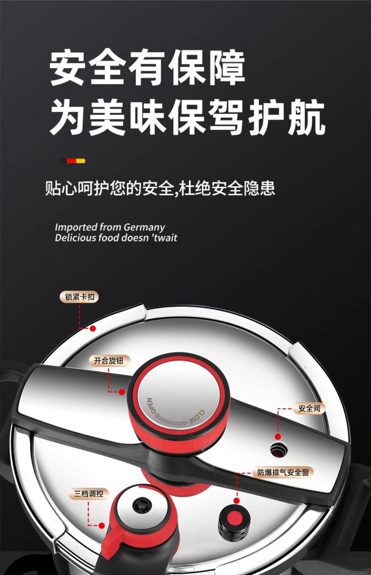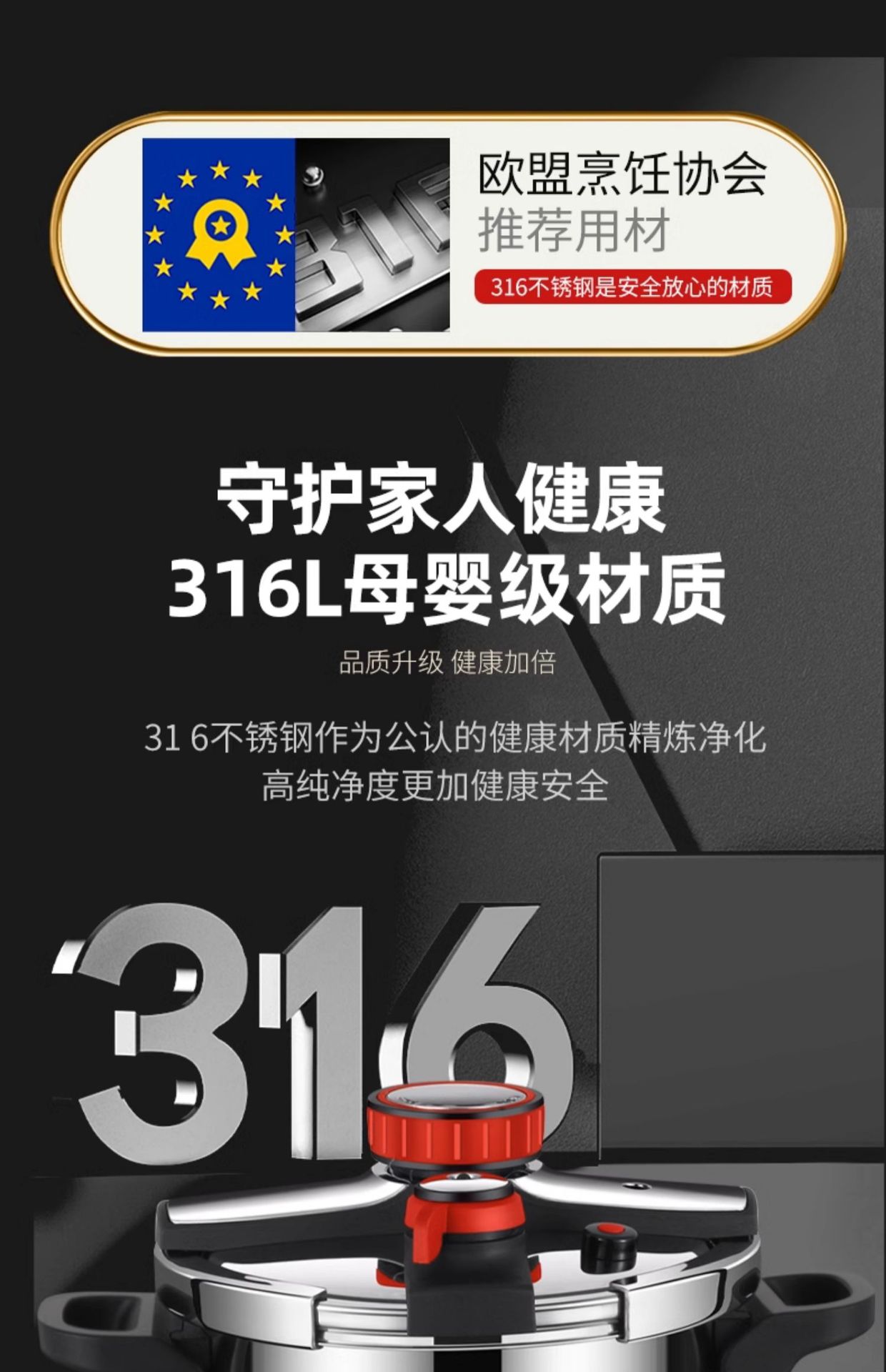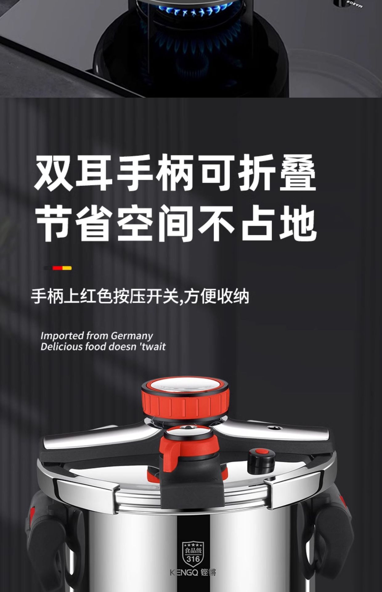 德国316不锈钢高压锅新款家用防爆压力锅多功能电磁炉煤气灶通用