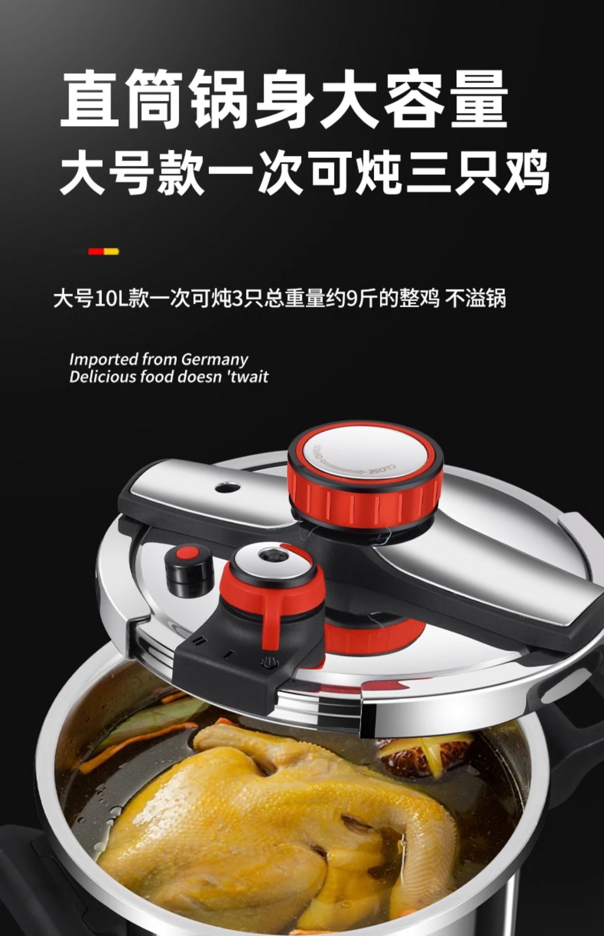 ドイツ高圧鍋家庭用316ステンレス鋼厚さ防爆圧力鍋大容量電磁炉通用食品級