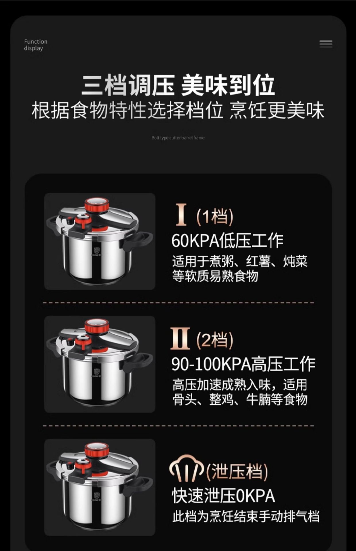 ドイツ工芸厚さ304ステンレス高圧鍋三段調圧快速調理防爆用家庭用圧力鍋