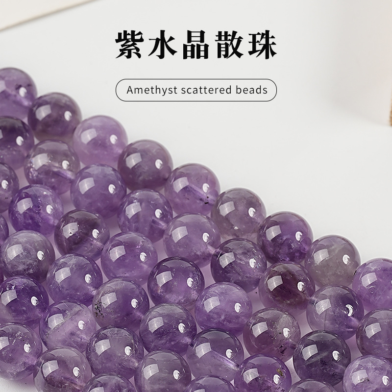 天然幻紫水晶散珠DIY手作りビーズ紫水晶半製品ラウンドビーズ
