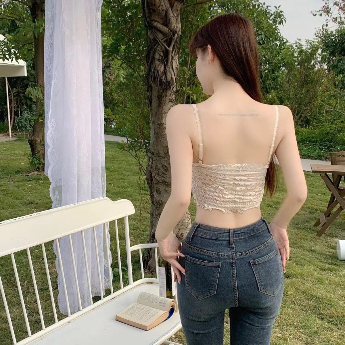 ピュアデシヤントリートリボンレースサスペンダーバックベスト胸パッド付きオールインワン胸巻きアウターボトムショートトップ