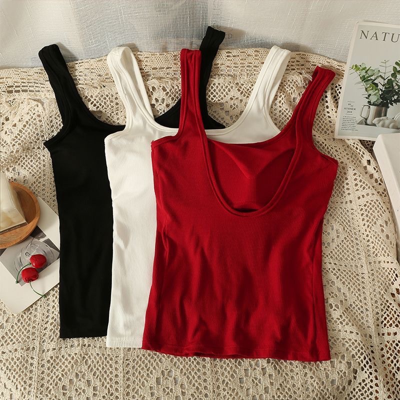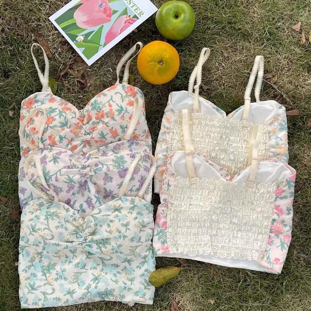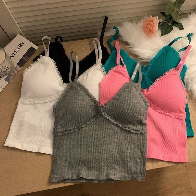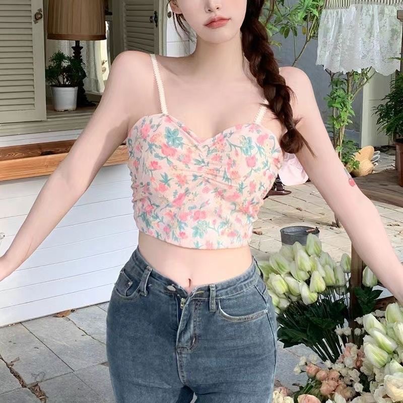 砕花小清新ストラップベスト女性は胸パッドを持って胸の中に美背をつけて胸を巻いて痩せている独特な甘いギャルの上着を見せます。