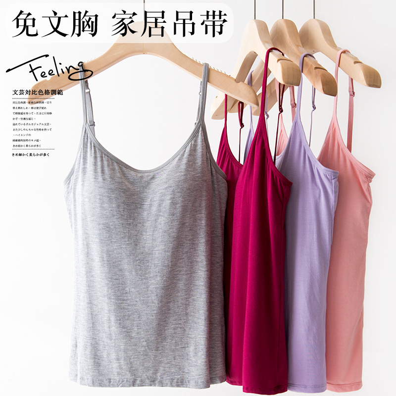 居家女带bra-t带胸垫无钢圈吊带背心免文胸罩杯一体运动瑜伽打底