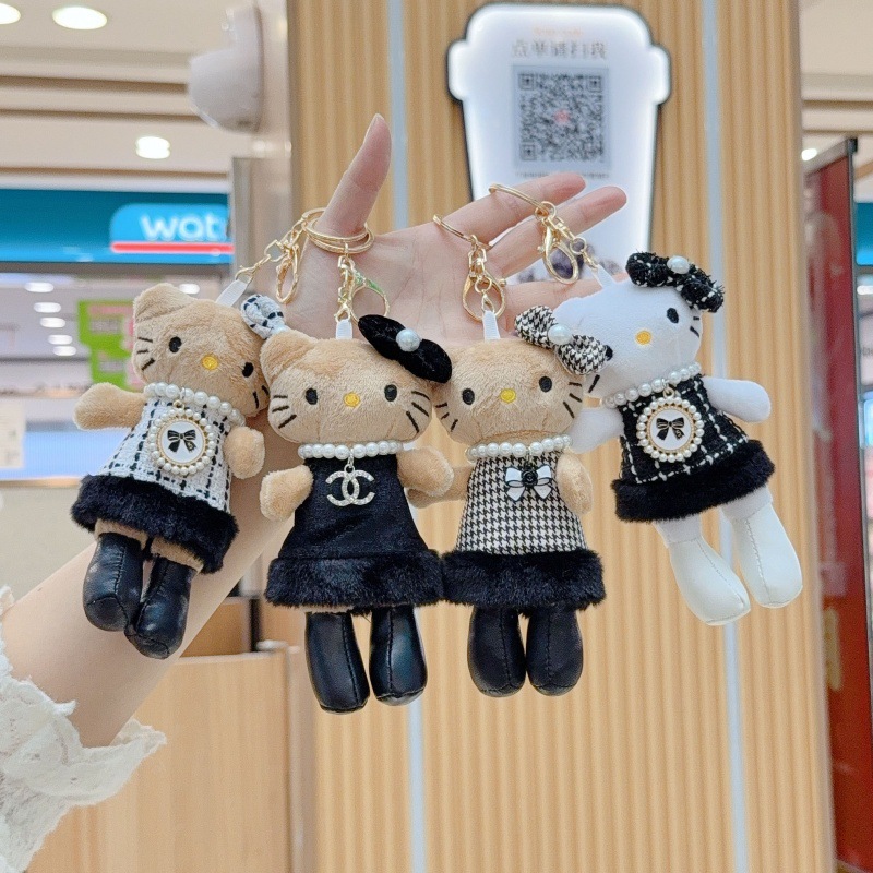 新款hello kitty豹纹长腿名媛风挂件毛绒公仔玩偶包包挂饰钥匙扣
