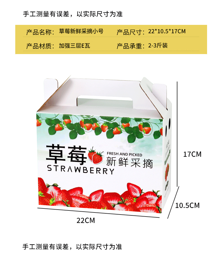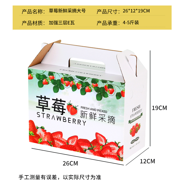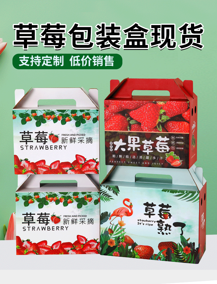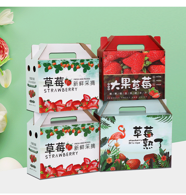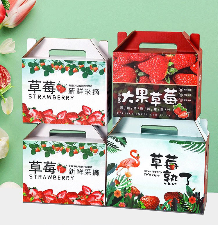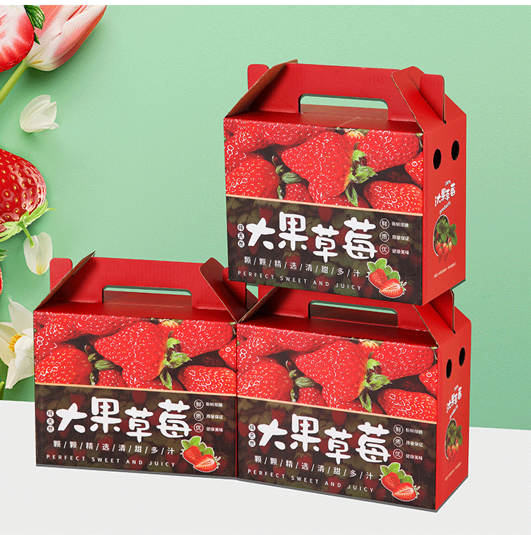 大果いちご包装箱赤手提げカラー段ボールいちご包装箱箱空箱にロゴを付けることができる