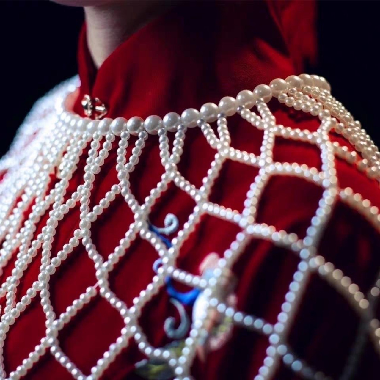 重工漢服真珠流蘇手編み雲肩優雅チャイナドレス撮影ストール道具真珠ストール外付け