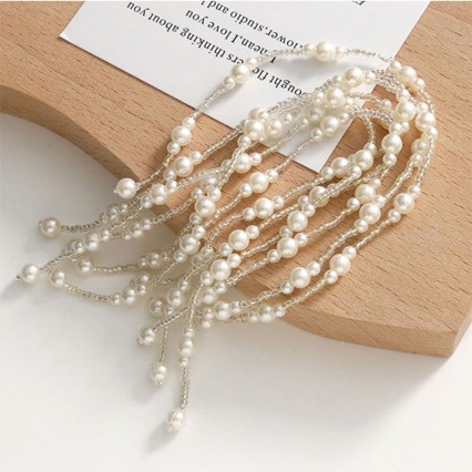 跨境珍珠身体链多层手工串珠马甲披肩优雅女装流苏衣饰