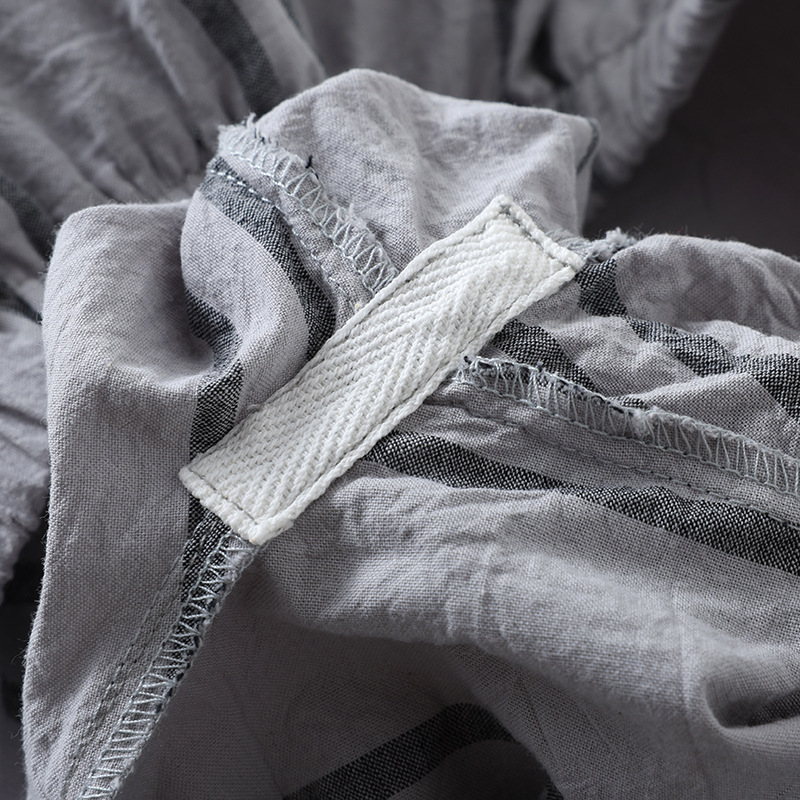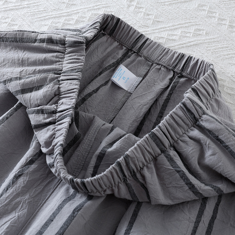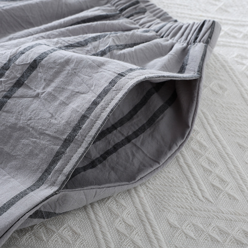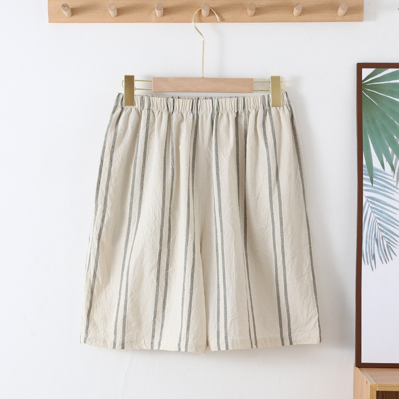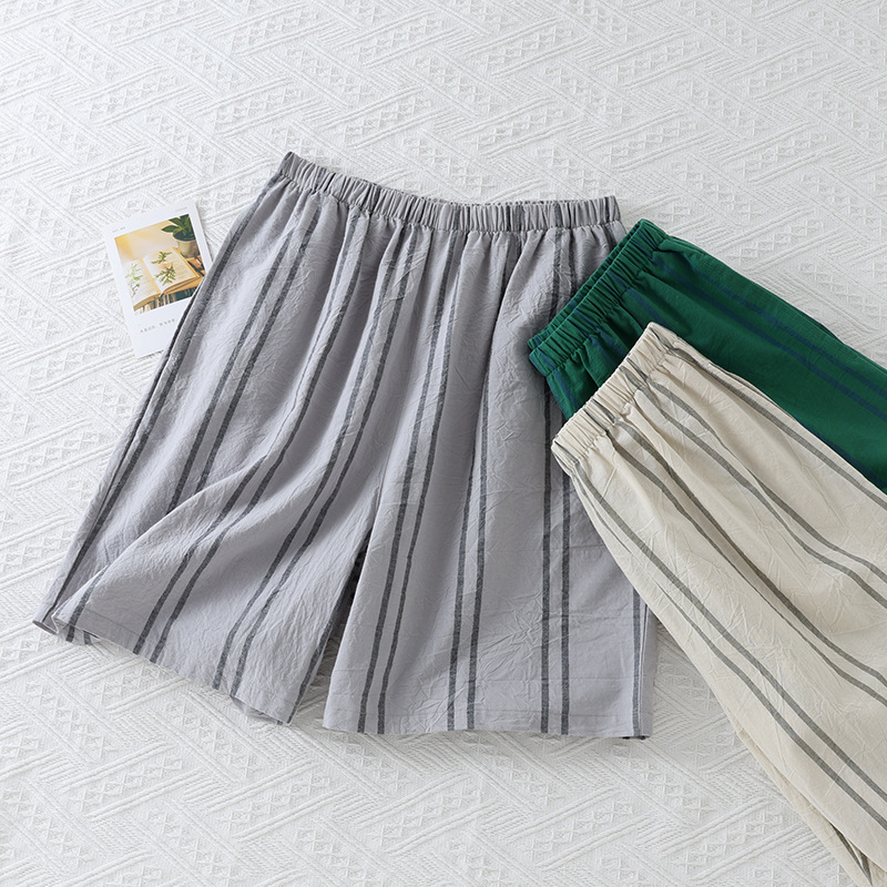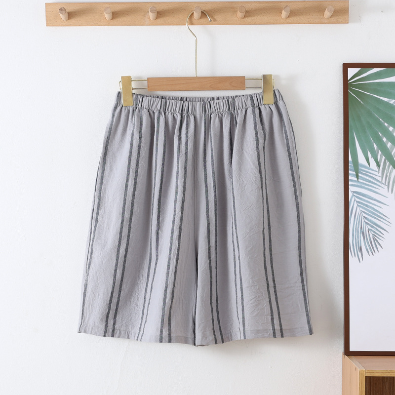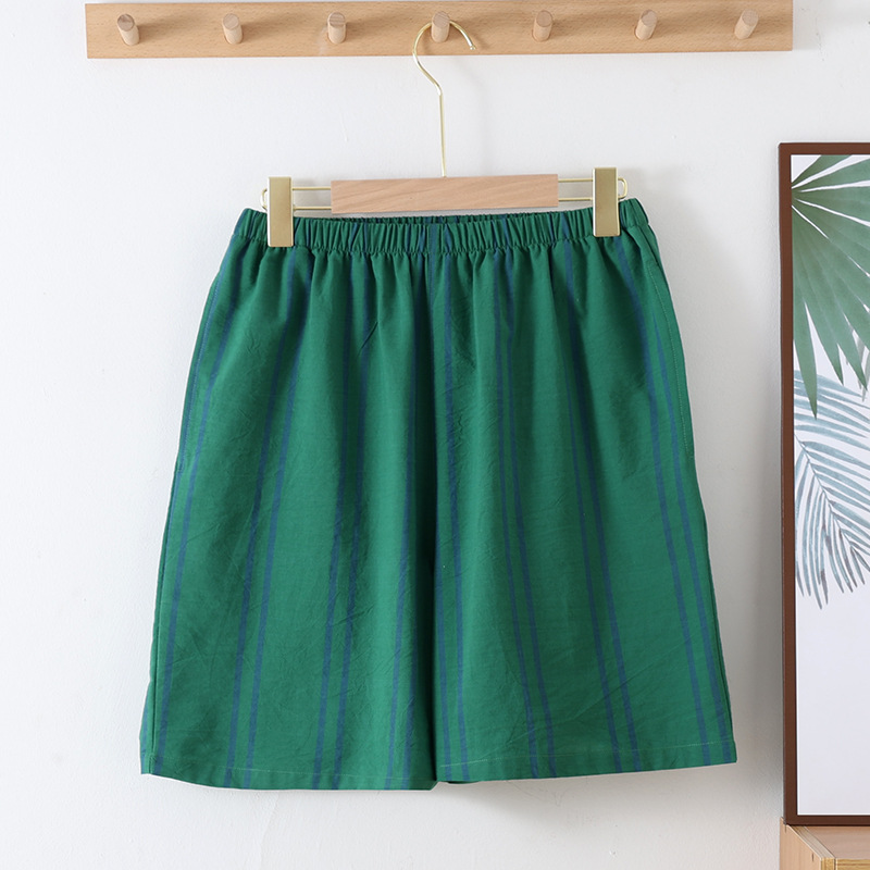 日系カジュアルメンズ格子純綿ショートパンツ薄手の水洗いコットンのゴムバンドは、ゆったりとしたシンプルな家庭用ズボンを着ることができます。