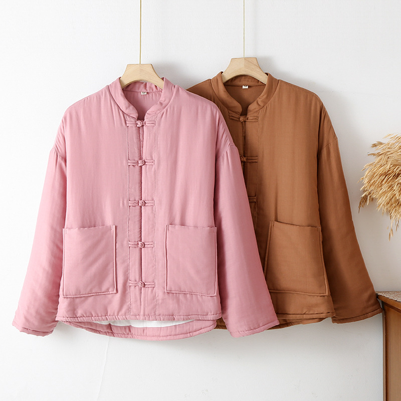 秋冬の新しい中国式のボタンの3層は綿を挟んで保温します。