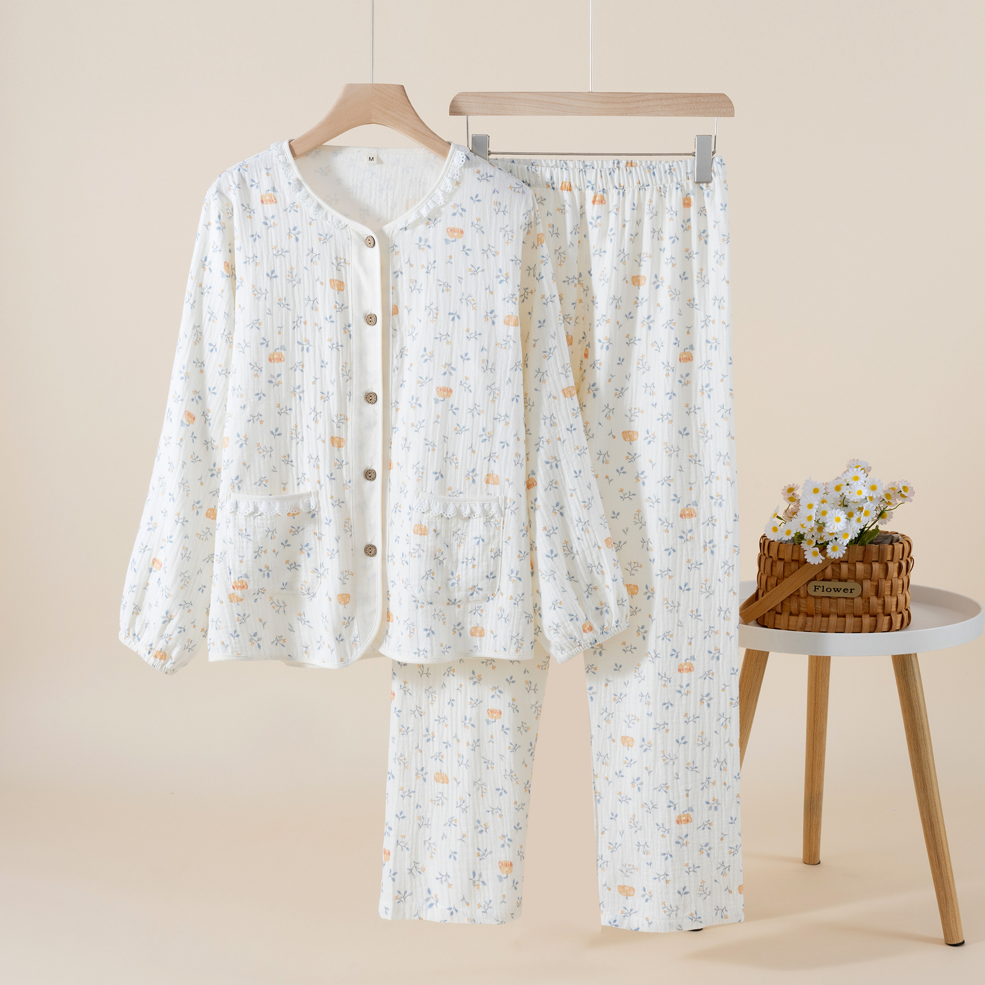 2025 新しい牧歌的なスタイルの純綿二層ガーゼパジャマ女性のための春と夏の薄いホーム服セットは屋外で着用できます