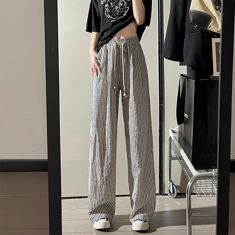 ストライプワイドレッグパンツ レディース 夏服 2025年新作 ゆったりハイウエストストレートパンツ 着痩せ効果 ゆったりカジュアルパンツ