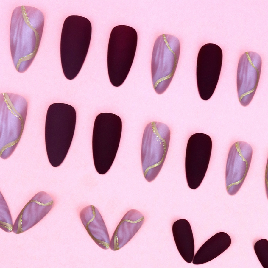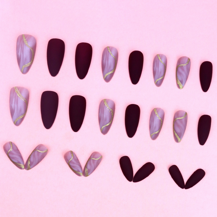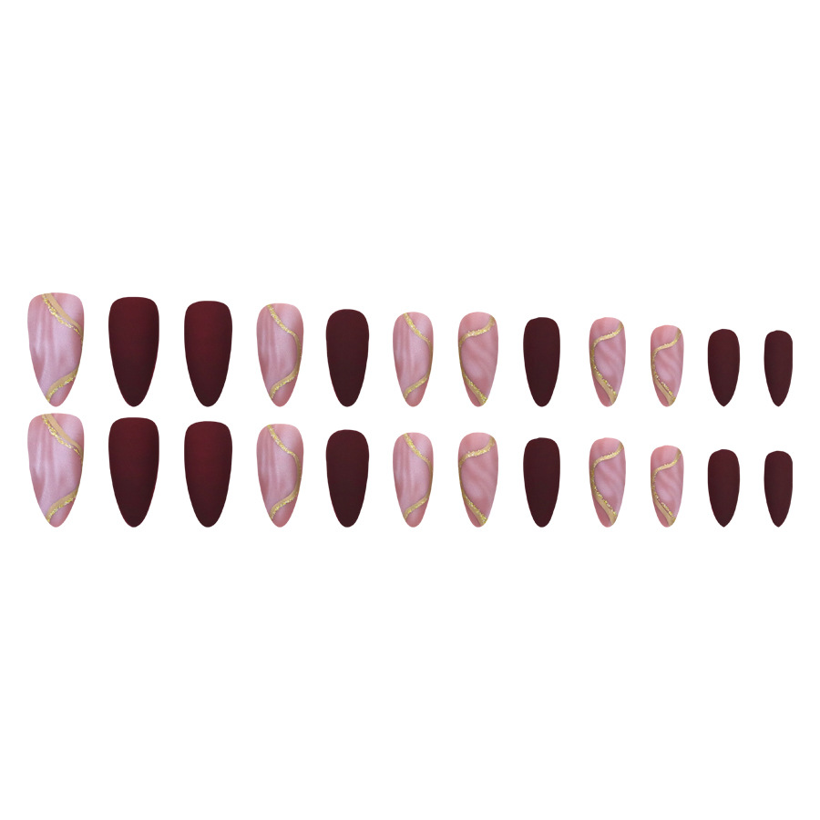 闪亮金粉波纹纯欲粉嫩杏仁甲穿戴甲成品批发跨境美甲穿戴甲24片