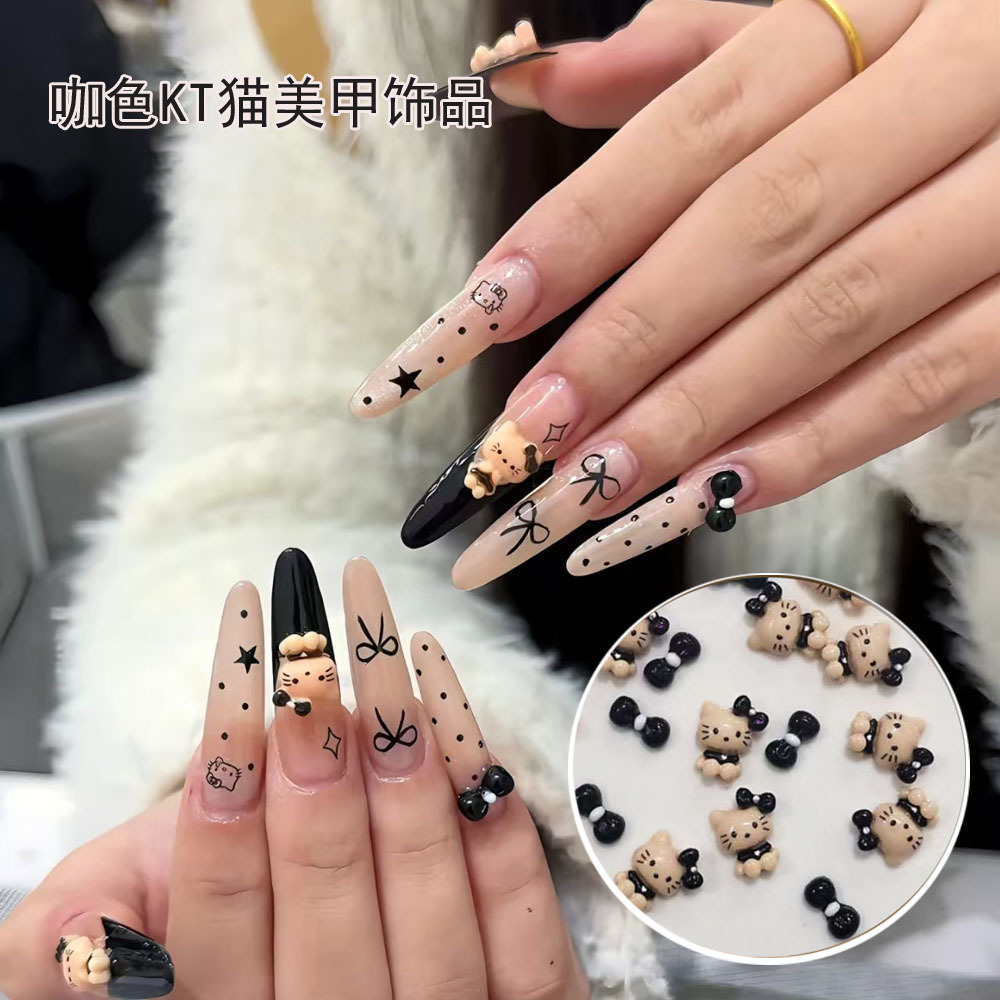 秋冬新款美甲饰品黑咖色hellokitty咖啡KT猫黑色蝴蝶结穿戴甲配饰