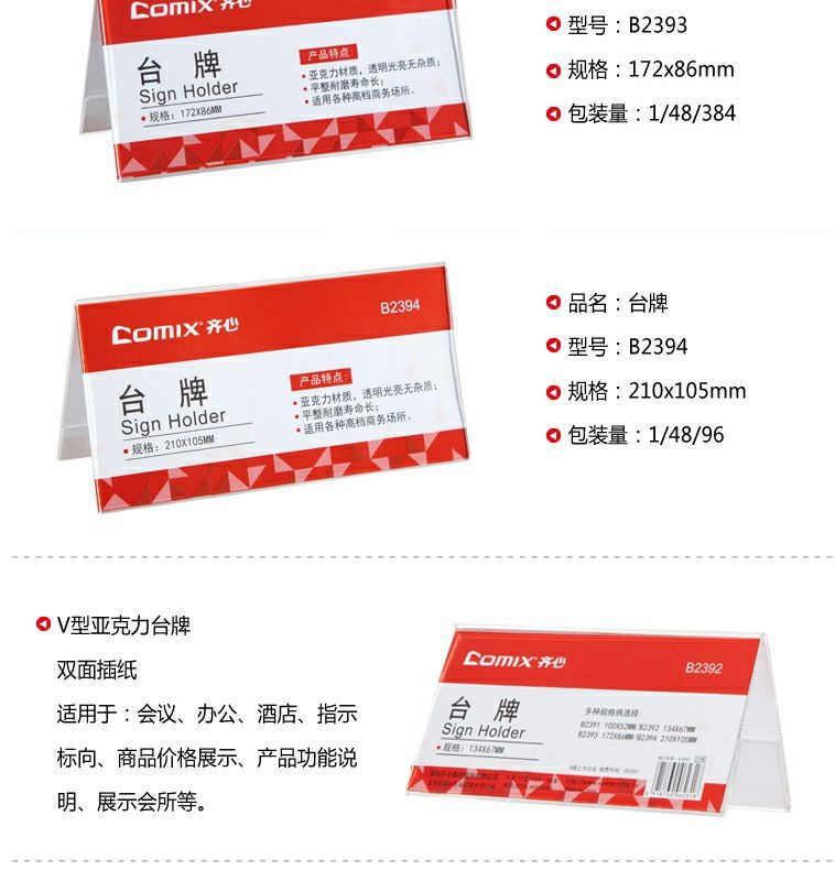 サイズ B2393 三角会議テーブルカード 172*86,B2394 三角会議テーブルカード 210*105,B2358 台湾ブランド V型 A6横,B2350 台湾ブランド A4縦,B2352 台湾ブランド A6 縦,2357 台湾ブランド V型 A6ヨコ
