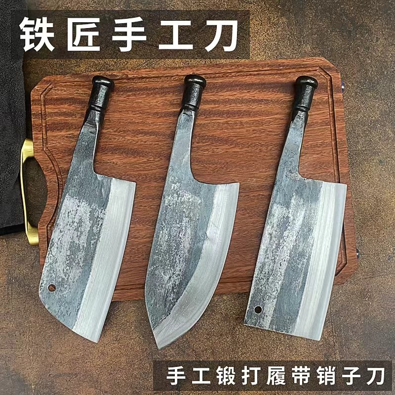 履带销子钢鱼头刀家用切丝切片切肉刀菜刀手工锻打割肉刀老式切菜
