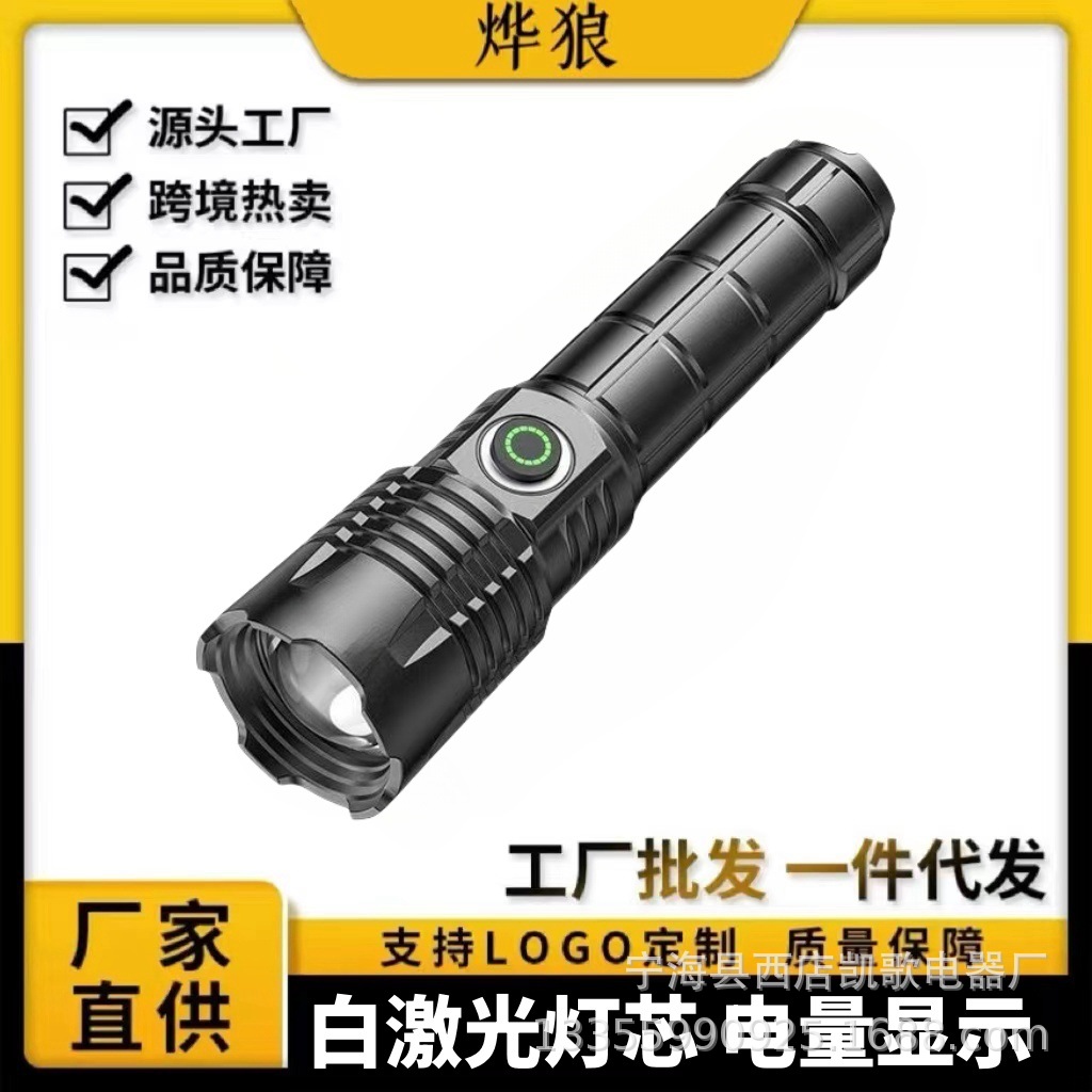 強光懐中電灯充電小型超亮遠射屋外携帯ミニキセノンランプ白レーザー集光小鋼砲