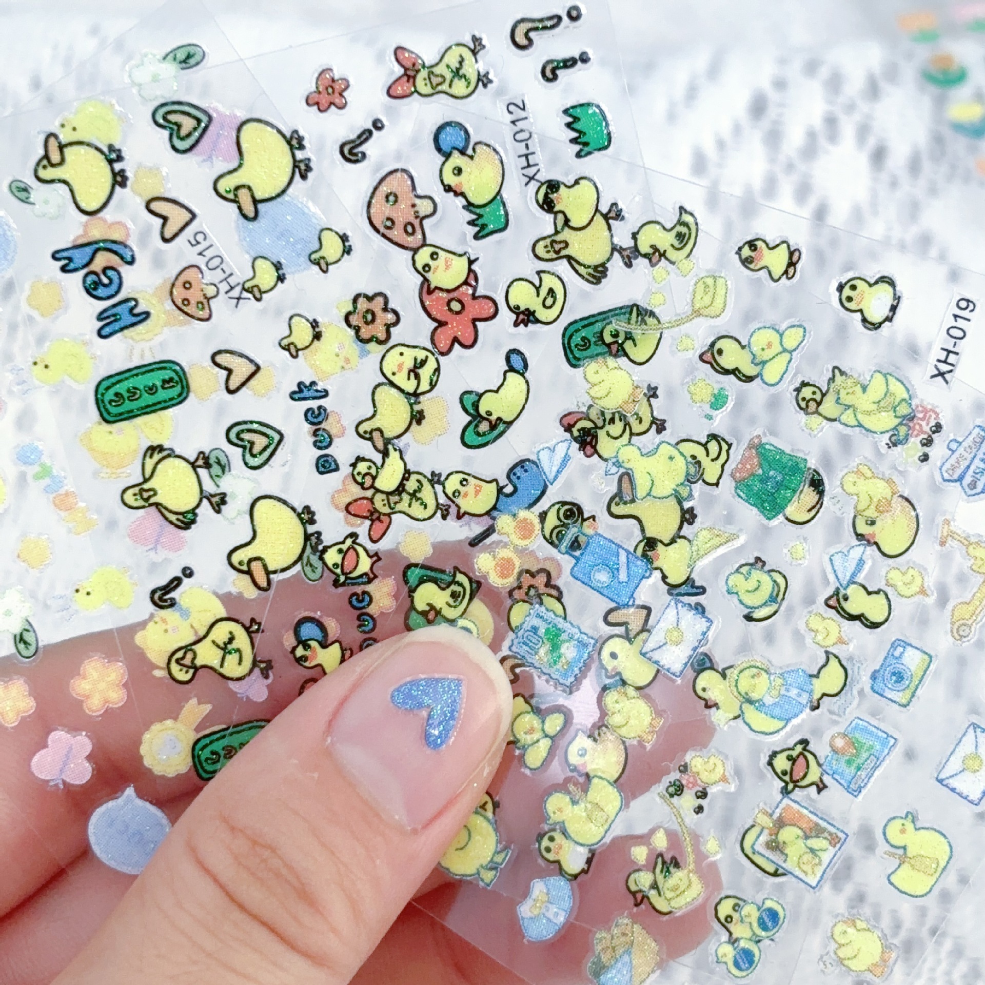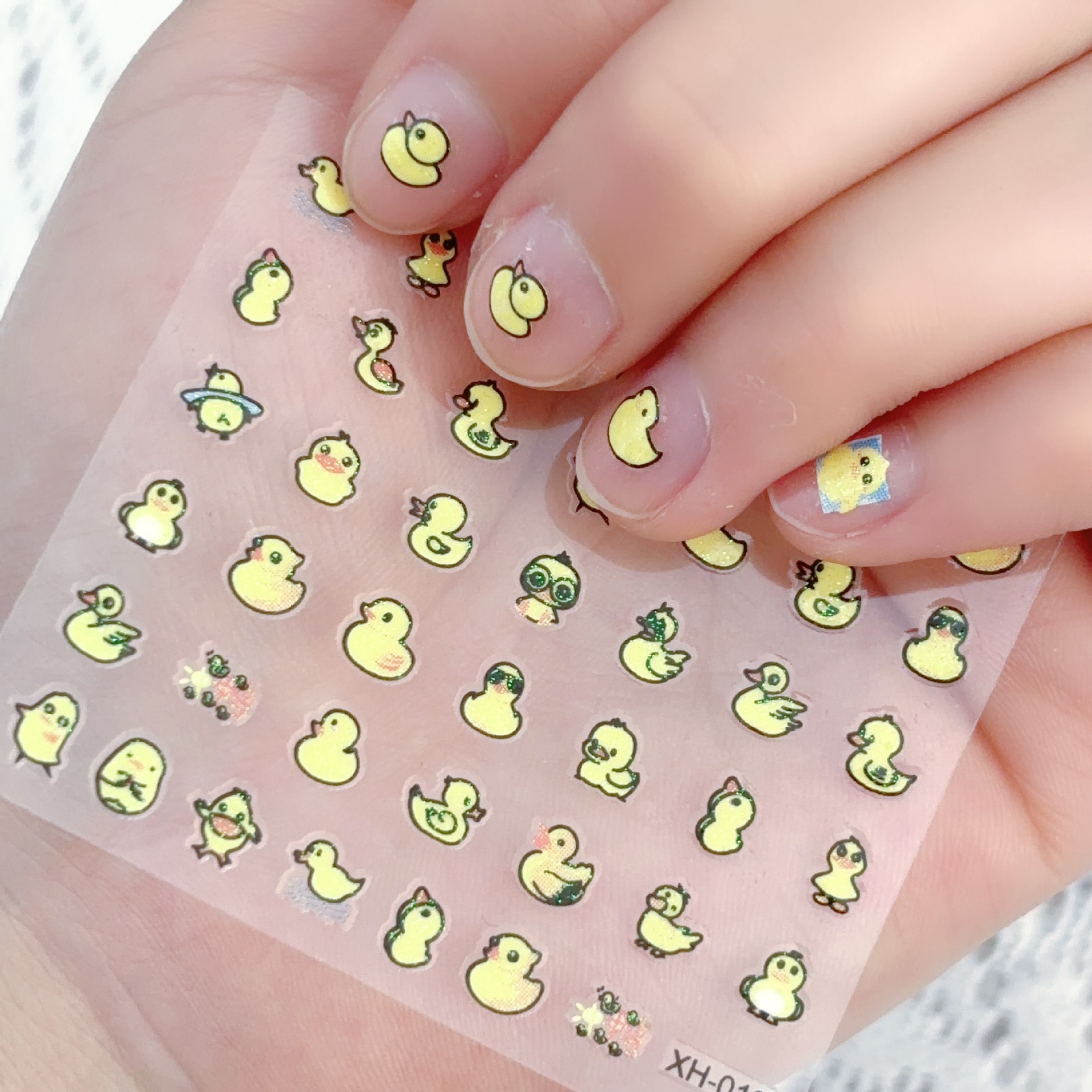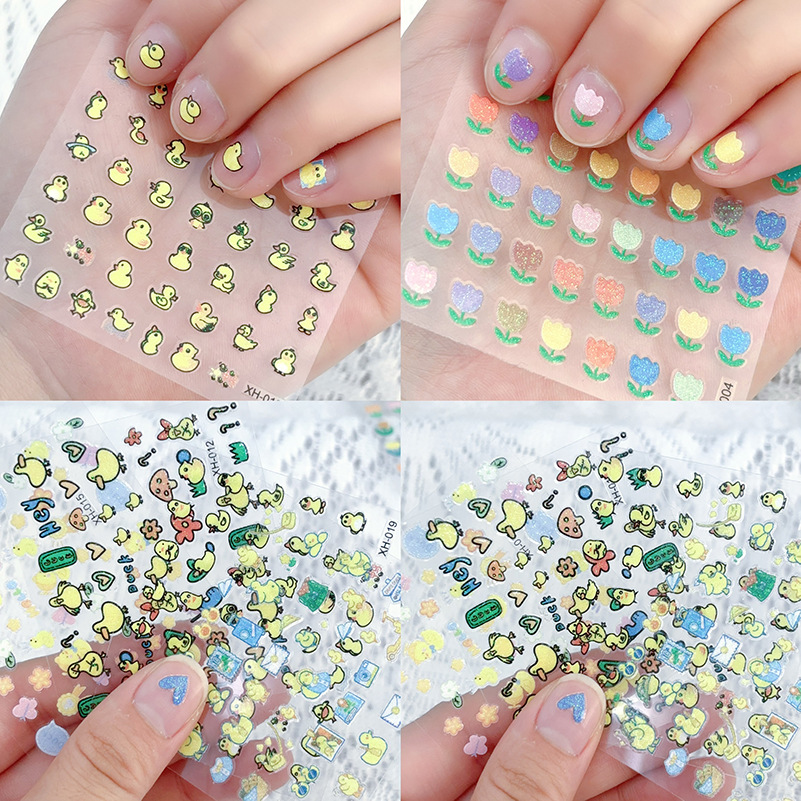 新商品の愛の小さい黄色のアヒルのネイルシールの混金の卸売りの日本のフラッシュの粉の漫画の子供のかわいい爪のステッカー