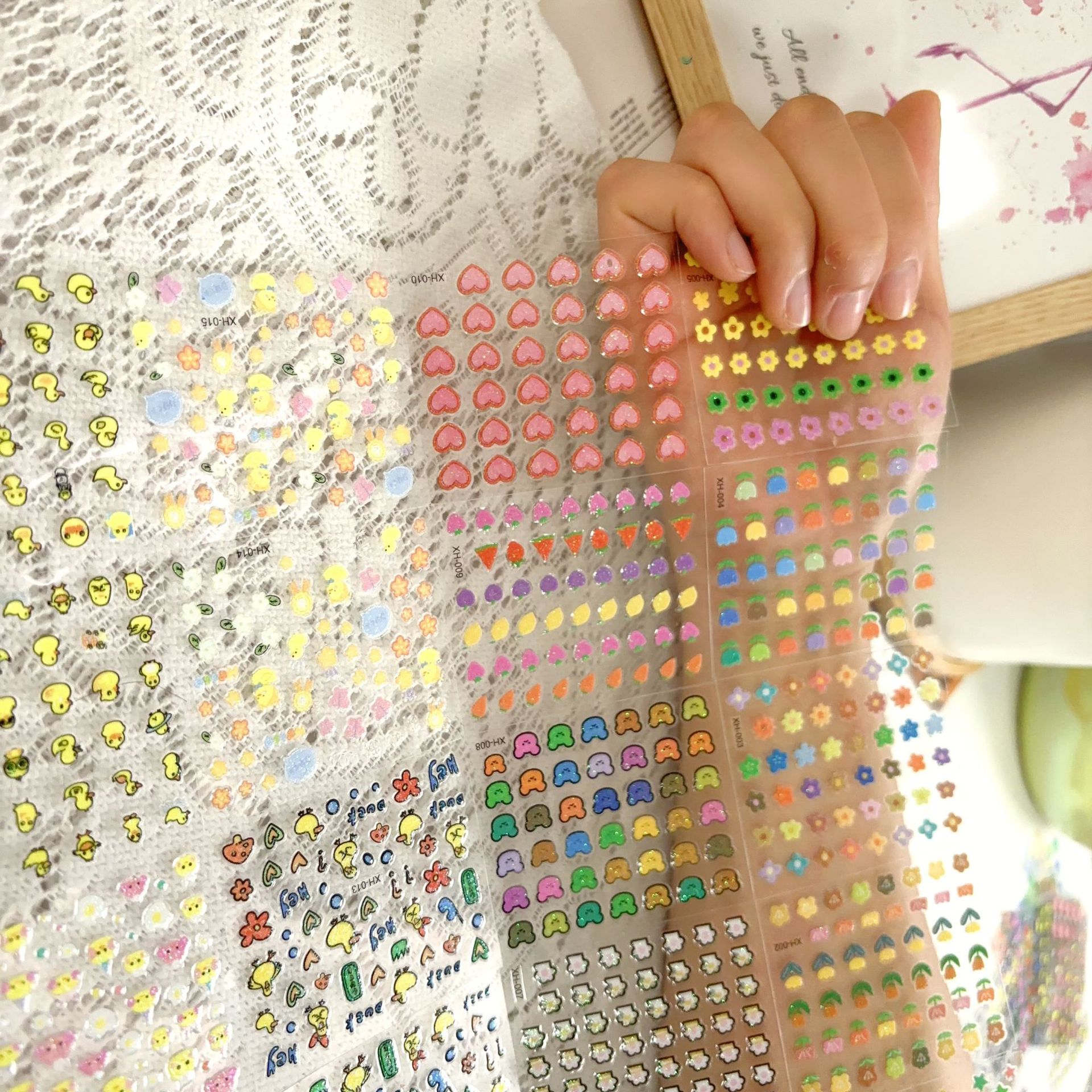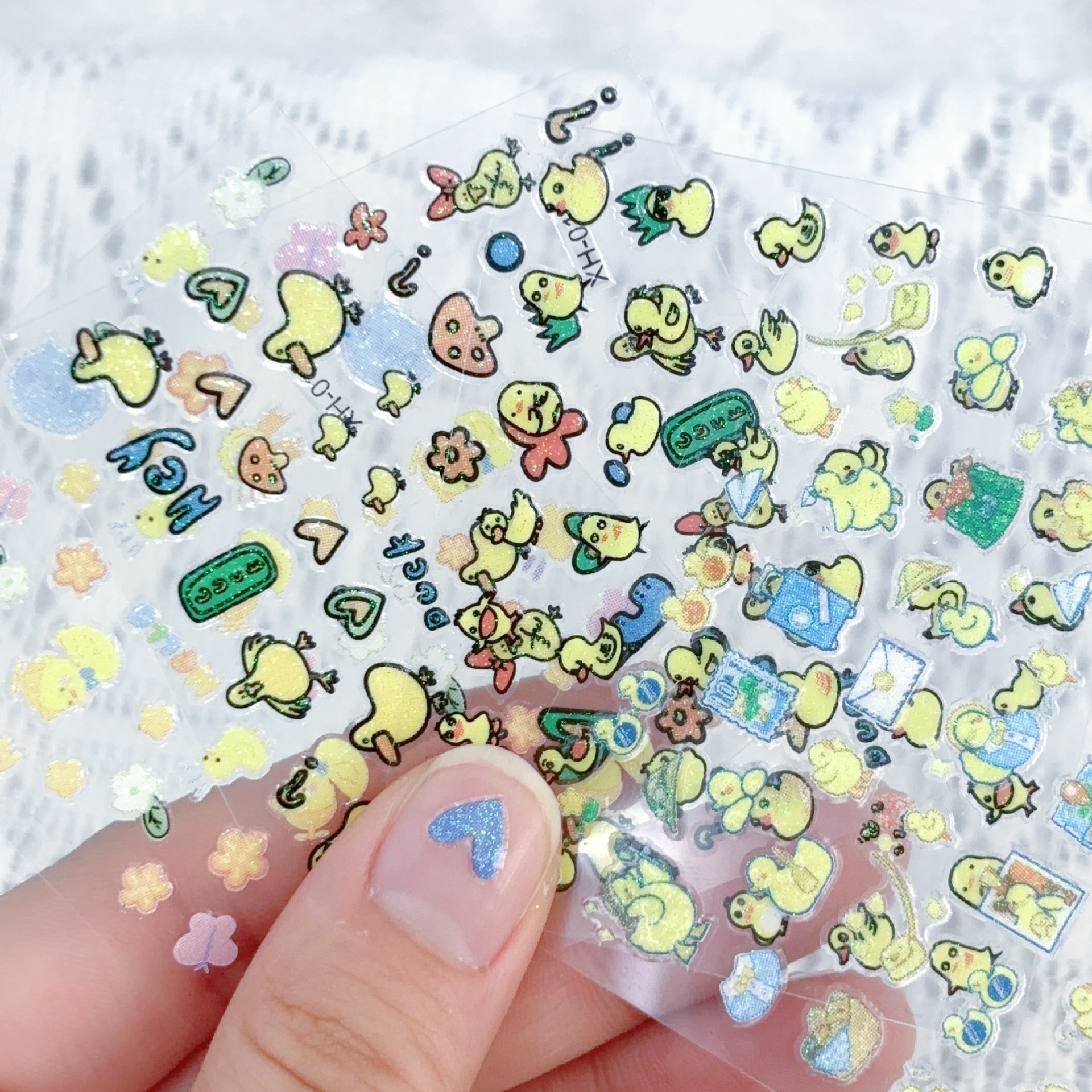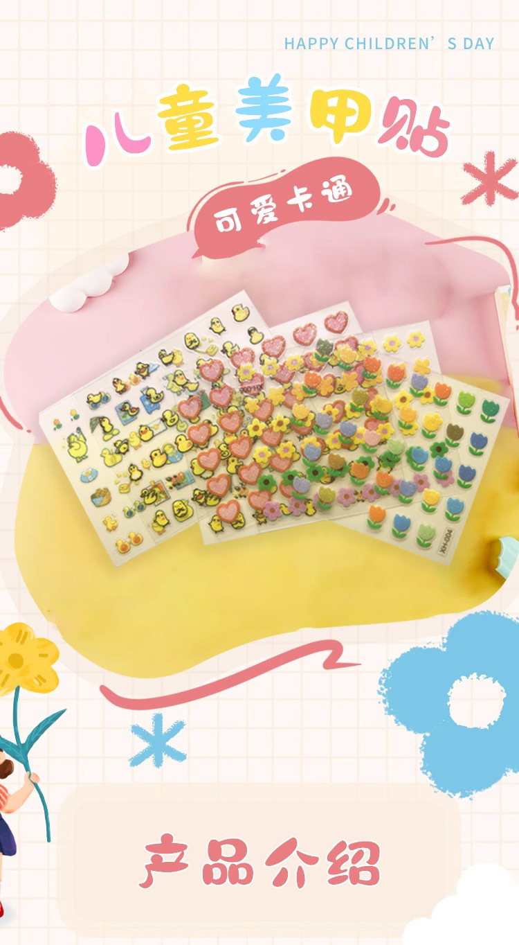 新商品の愛の小さい黄色のアヒルのネイルシールの混金の卸売りの日本のフラッシュの粉の漫画の子供のかわいい爪のステッカー
