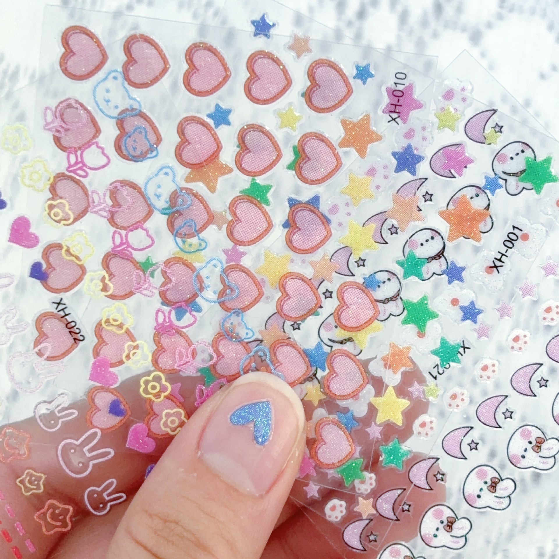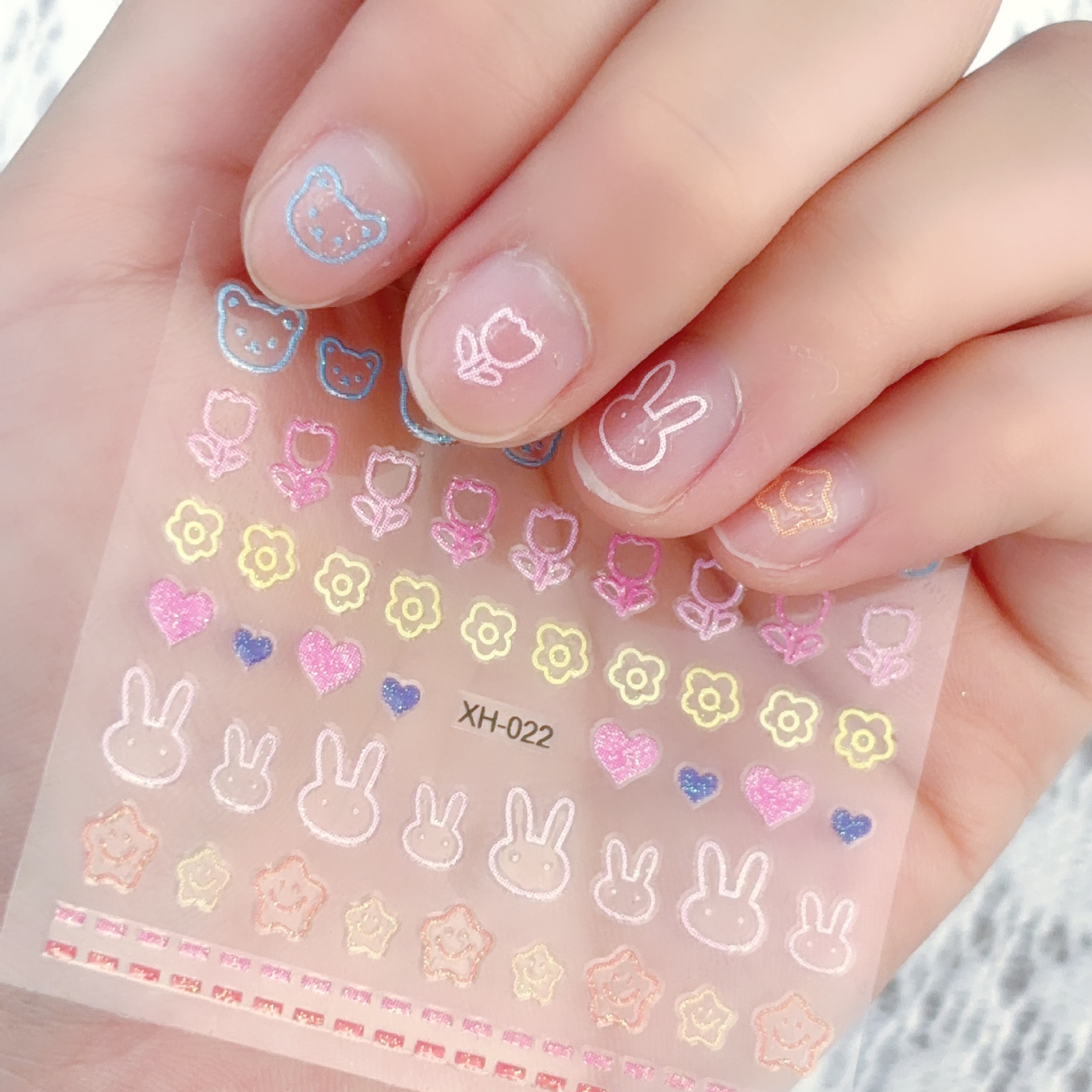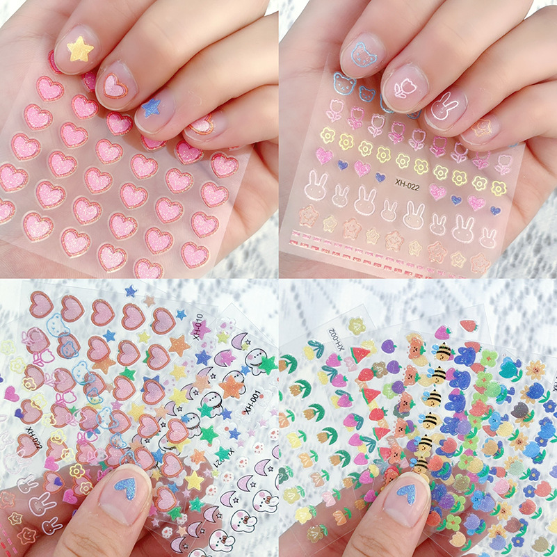 漫画風子供用ネイルステッカー 夜光うさぎ 花柄 5D立体蝶 星月ネイルステッカー 混合卸売