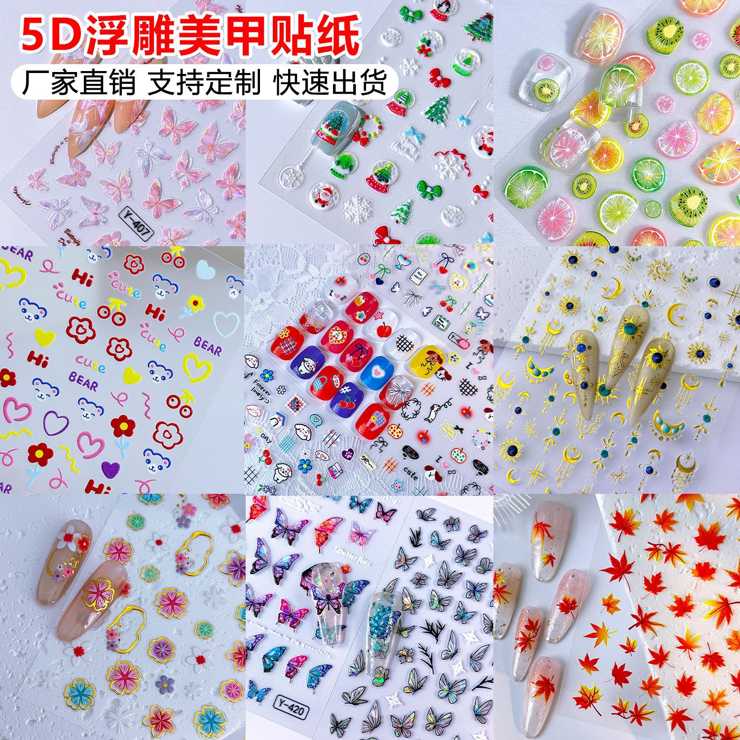 5D立体フラワーバタフライネイルステッカー5D浮き彫りライン落書きクリスマス粘着ネイルステッカーメーカー